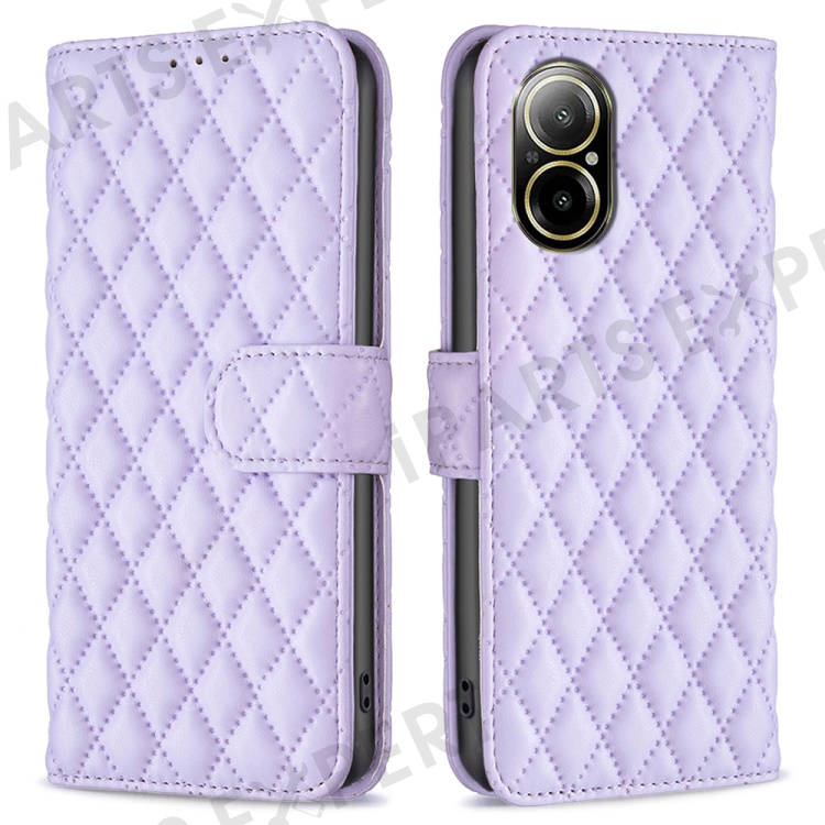 BINFEN COLOR BF Style-14 For Realme C67 4G Case Rhombus Grid Leather Scratch-proof Phone Shell - Purple