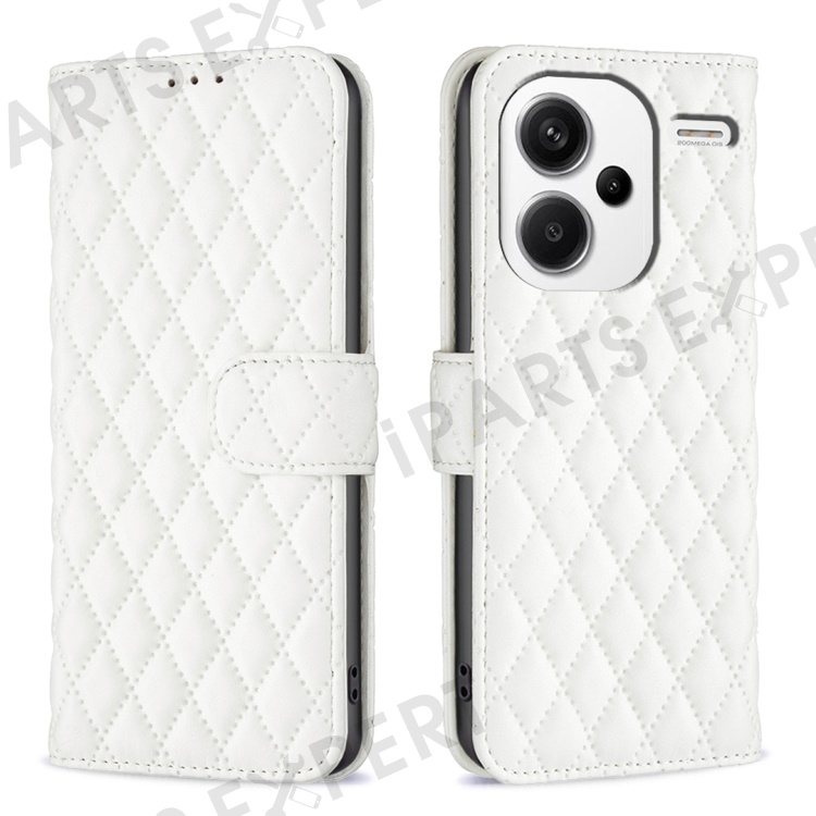 BINFEN COLOR BF Style-14 For Xiaomi Redmi Note 13 Pro+ 5G Case Leather Rhombus Phone Cover - White