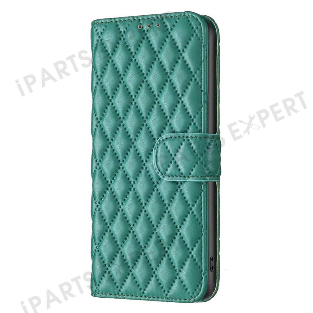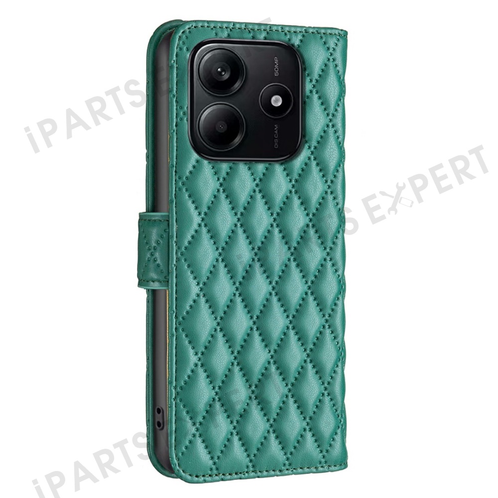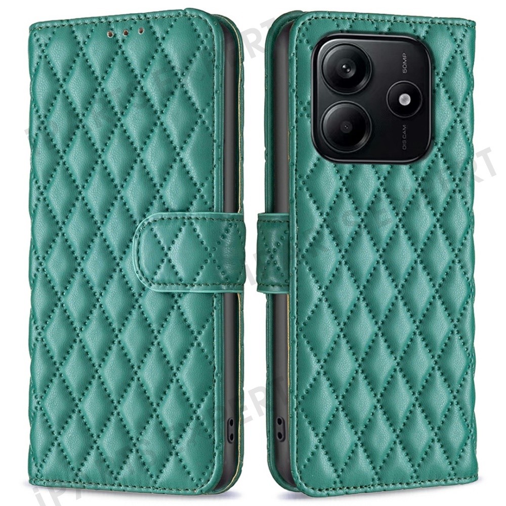 BINFEN COLOR BF Style-14 For Xiaomi Redmi Note 14 4G (163.25mm) Case Rhombus Phone Leather Cover Stand - Green