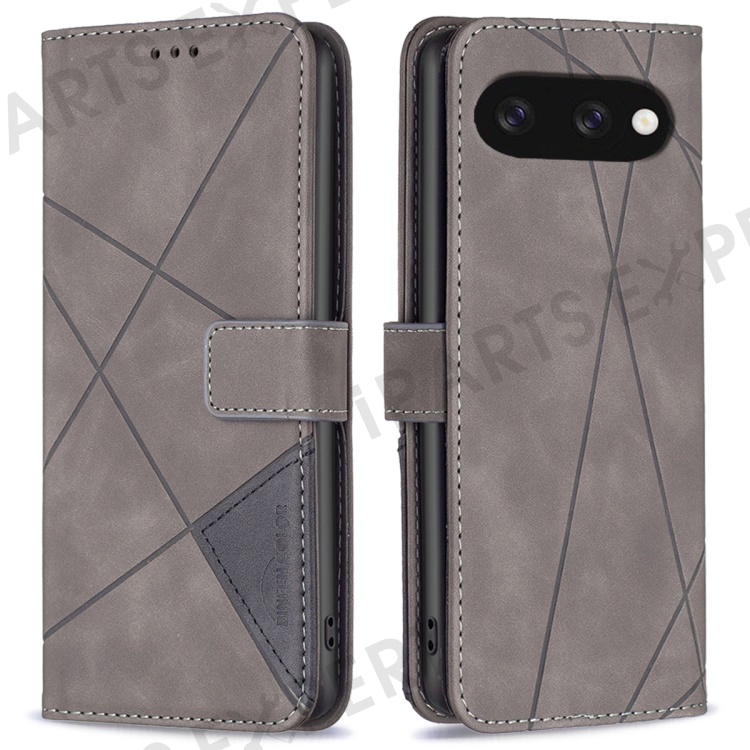BINFEN COLOR For Google Pixel 9a Phone Cases Wallet Stand Geometry Imprint Leather Cover - Grey