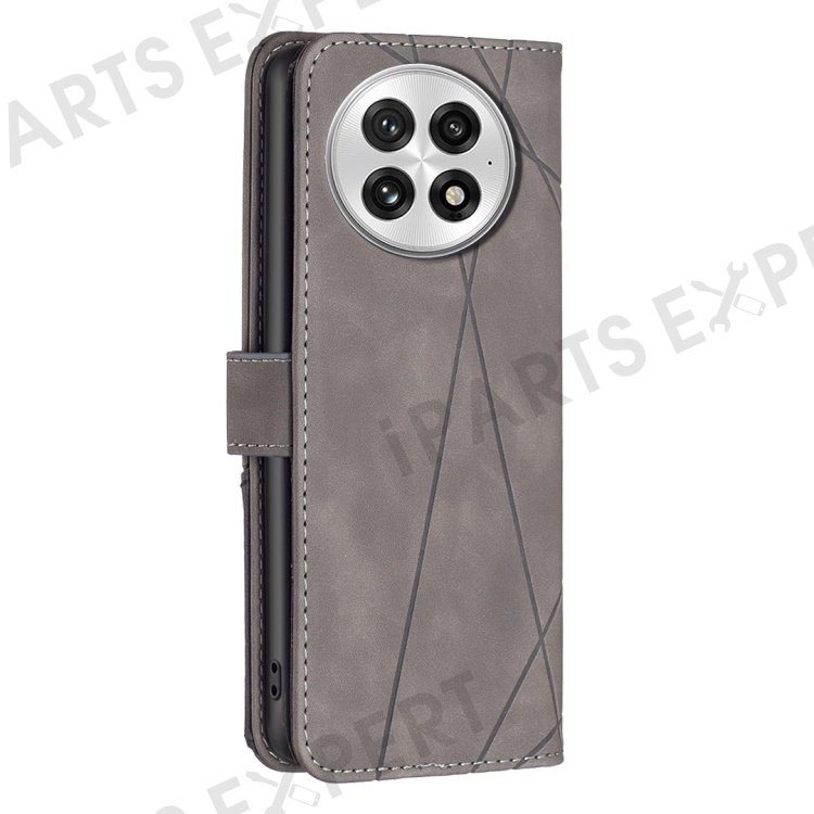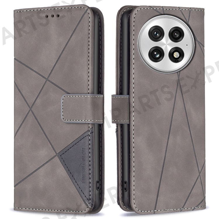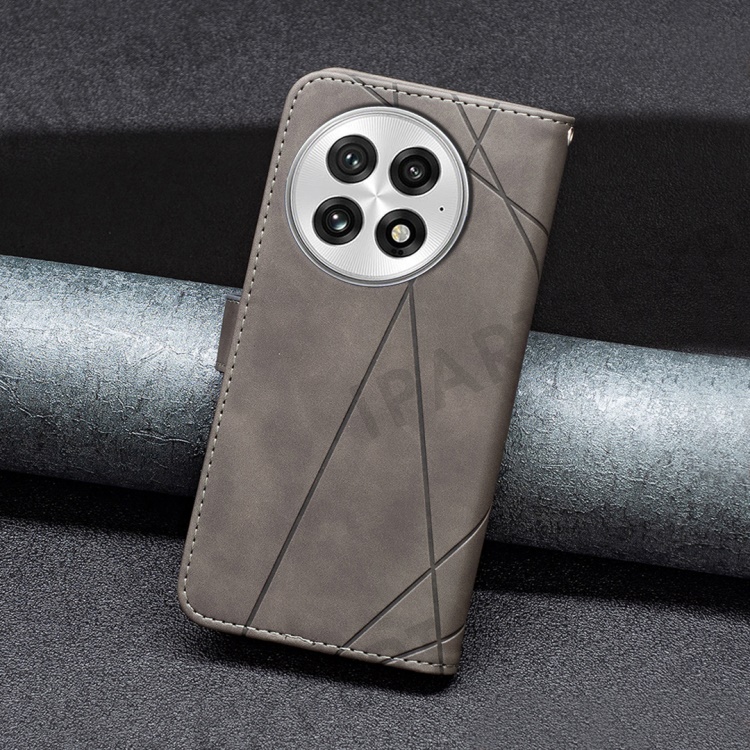 BINFEN COLOR For OnePlus 13 Phone Cases Wallet Stand Geometry Imprint Leather Cover - Grey