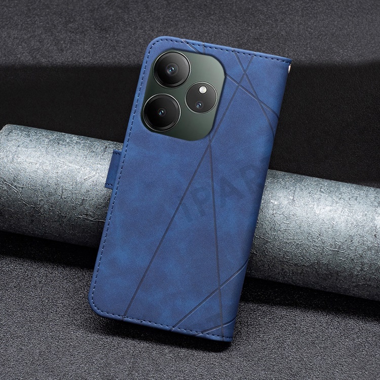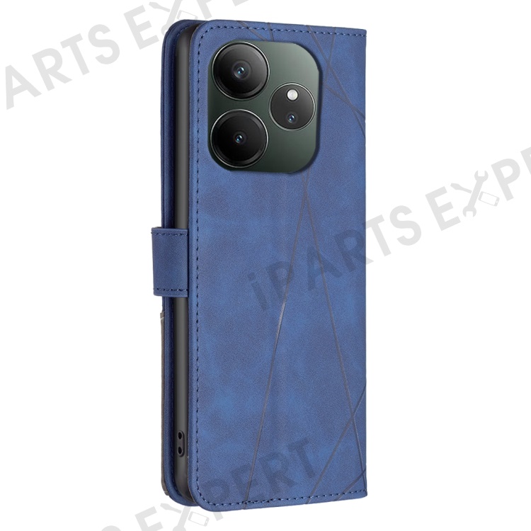 BINFEN COLOR For Realme GT 6 5G / GT 6T 5G Phone Cases Wallet Stand Geometry Imprint Leather Cover - Blue