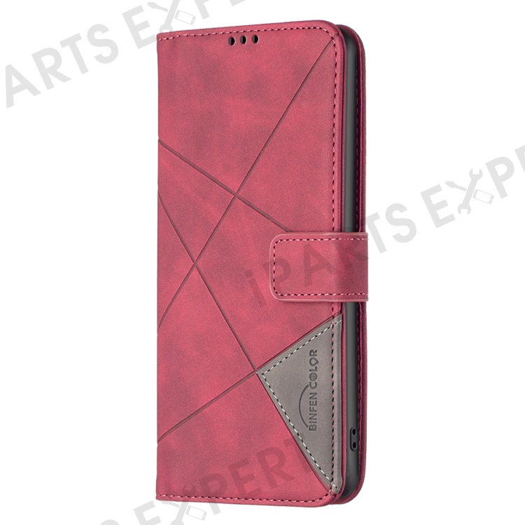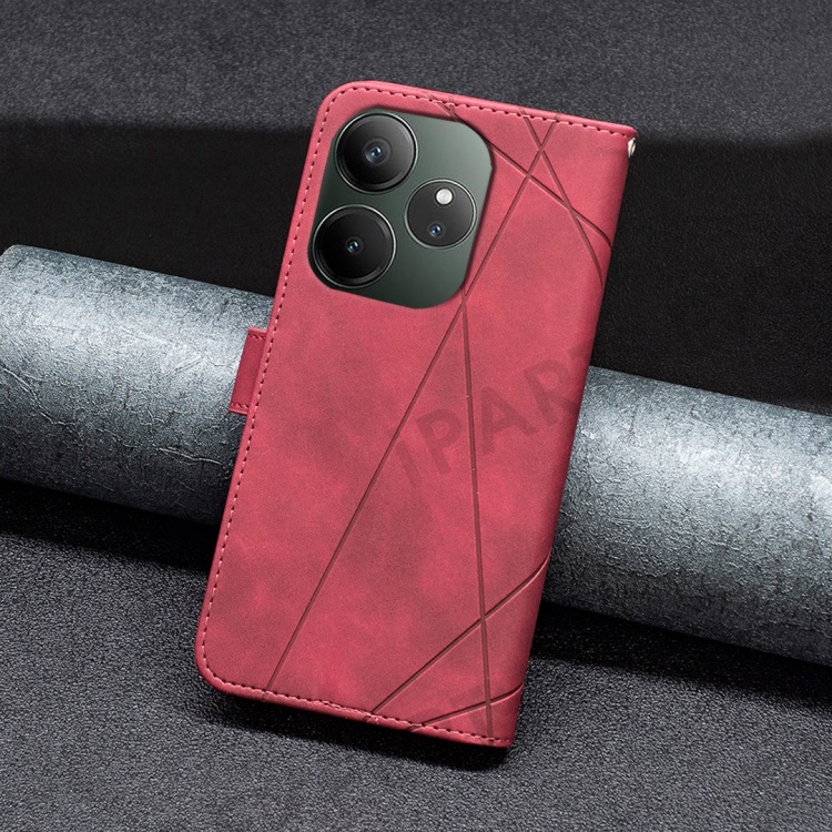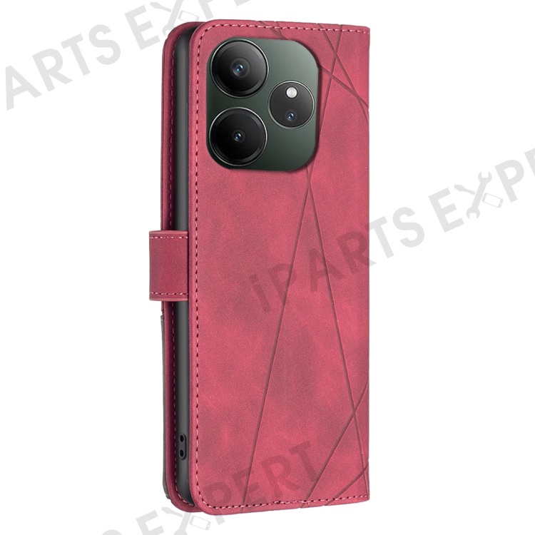 BINFEN COLOR For Realme GT 6 5G / GT 6T 5G Phone Cases Wallet Stand Geometry Imprint Leather Cover - Red