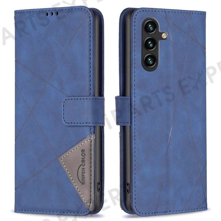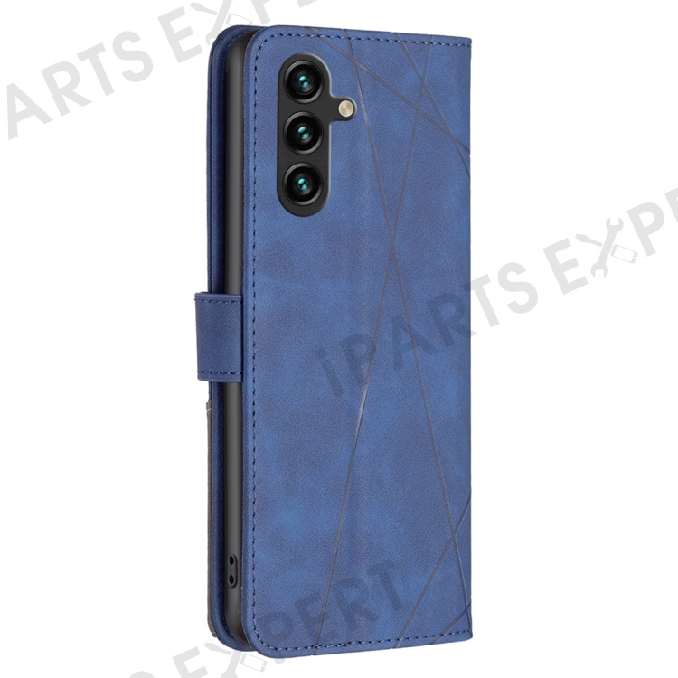 BINFEN COLOR For Samsung Galaxy A56 5G Phone Cases Wallet Stand Geometry Imprint Leather Cover - Blue