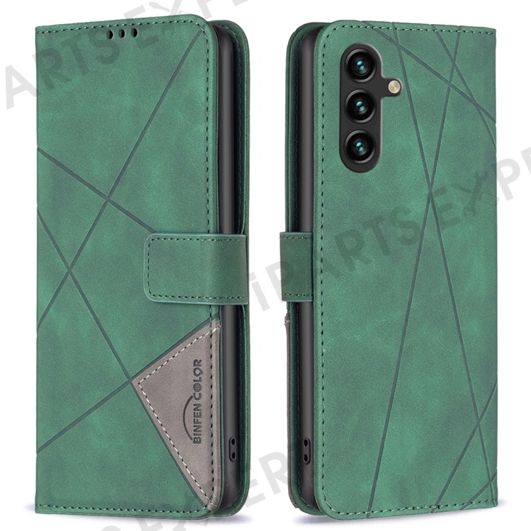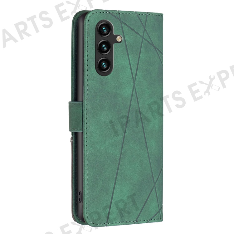 BINFEN COLOR For Samsung Galaxy A56 5G Phone Cases Wallet Stand Geometry Imprint Leather Cover - Green
