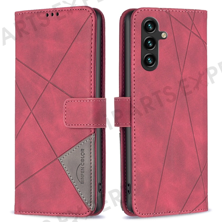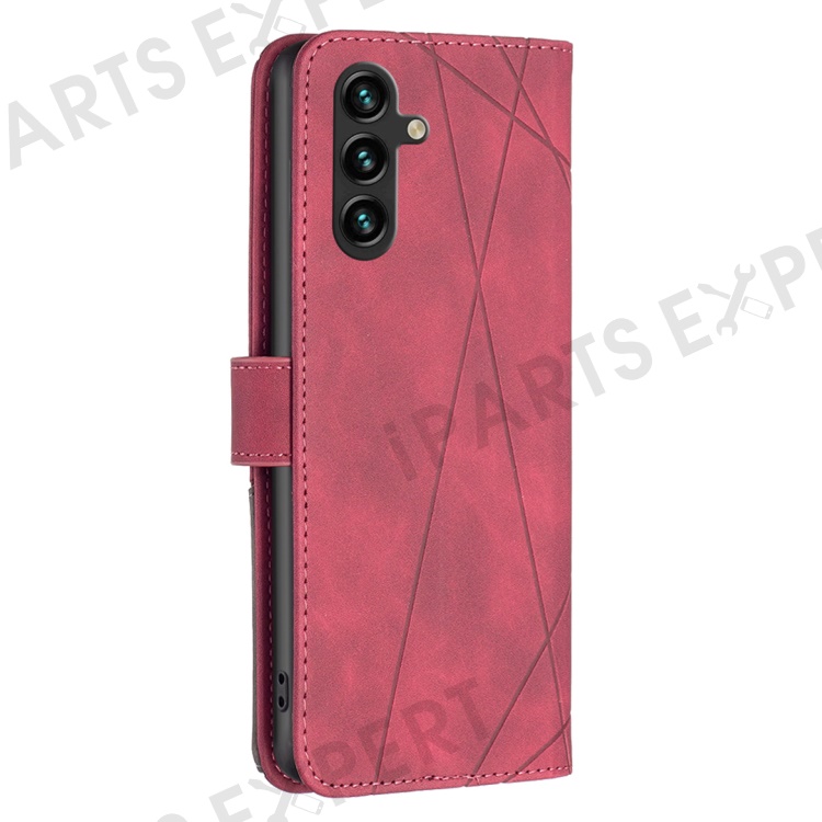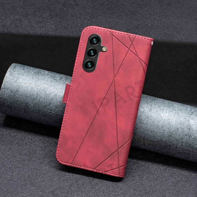 BINFEN COLOR For Samsung Galaxy A56 5G Phone Cases Wallet Stand Geometry Imprint Leather Cover - Red