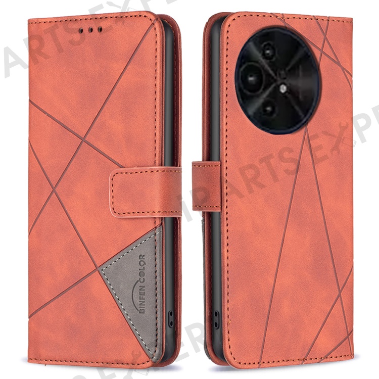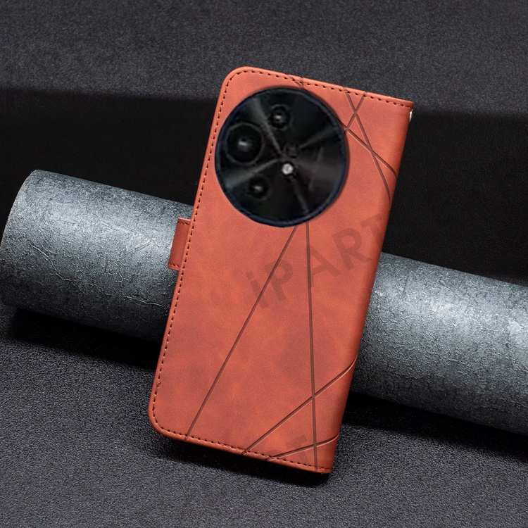 BINFEN COLOR For TCL 50 XL 5G Phone Cases Wallet Stand Geometry Imprint Leather Cover - Brown