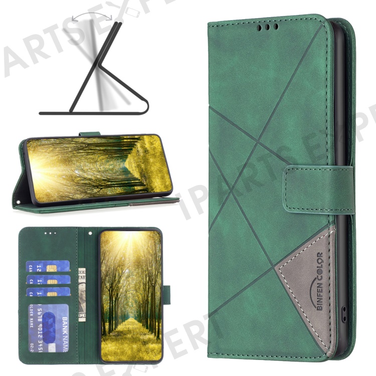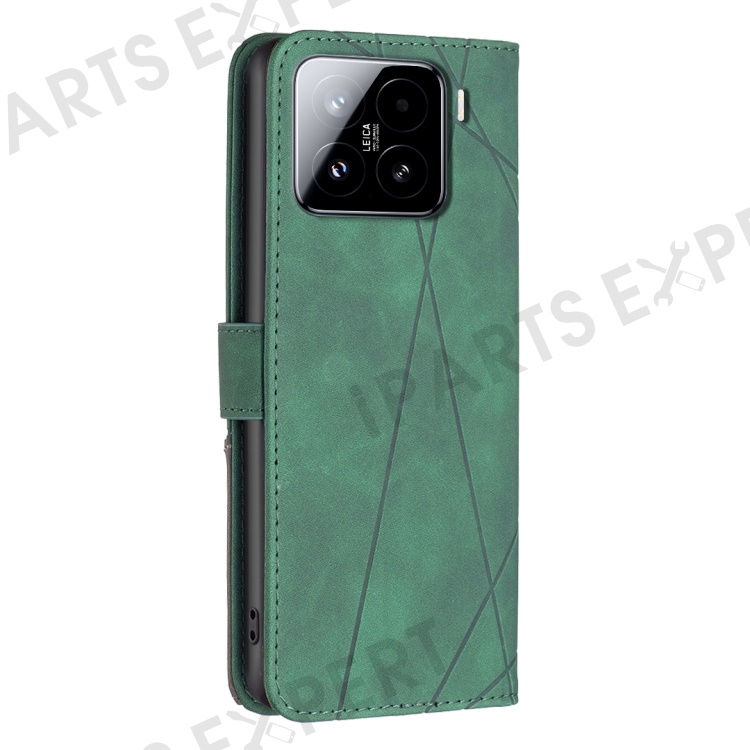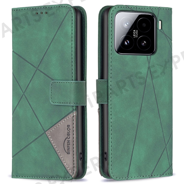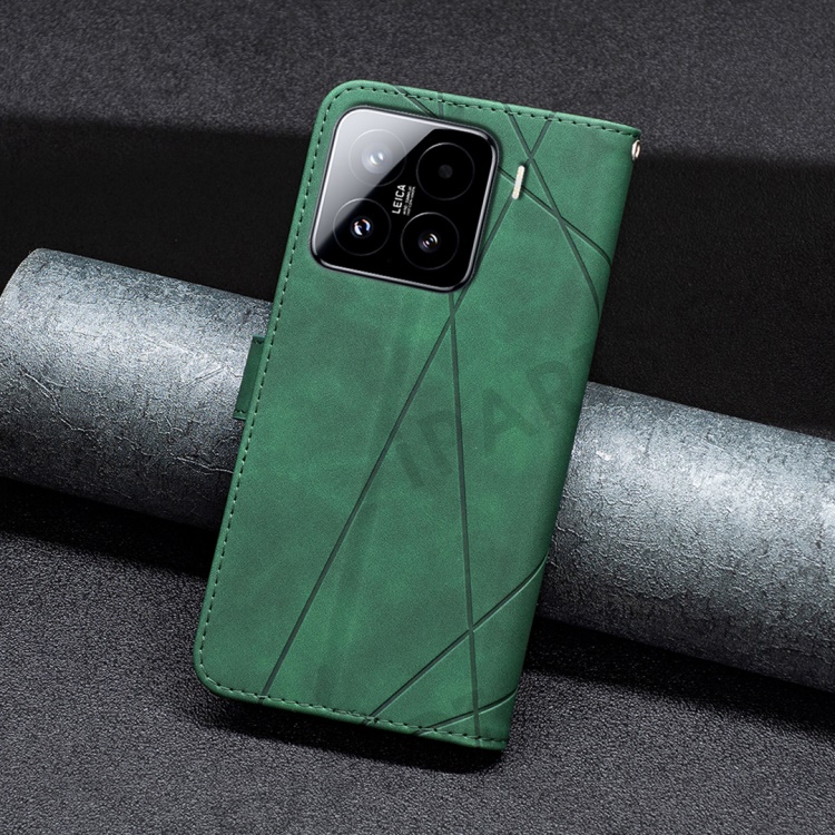 BINFEN COLOR For Xiaomi 15 Phone Cases Wallet Stand Geometry Imprint Leather Cover - Green