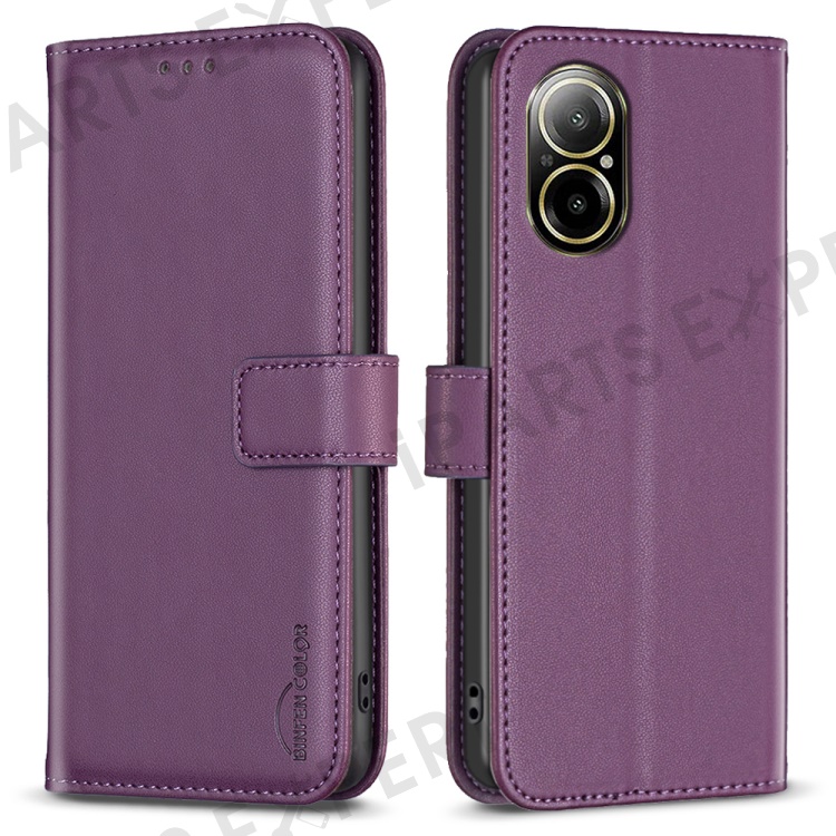 BINFEN COLOR BF17 For Realme C67 4G Case Wallet Leather Folio Phone Cover with Magnetic Closure - Dark Purple