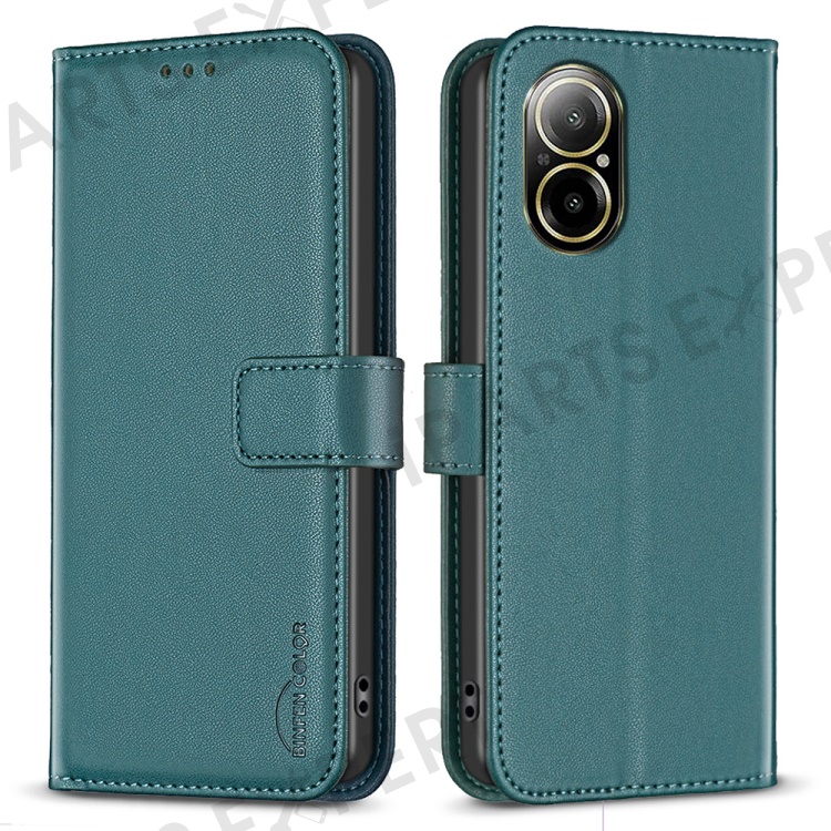 BINFEN COLOR BF17 For Realme C67 4G Case Wallet Leather Folio Phone Cover with Magnetic Closure - Green