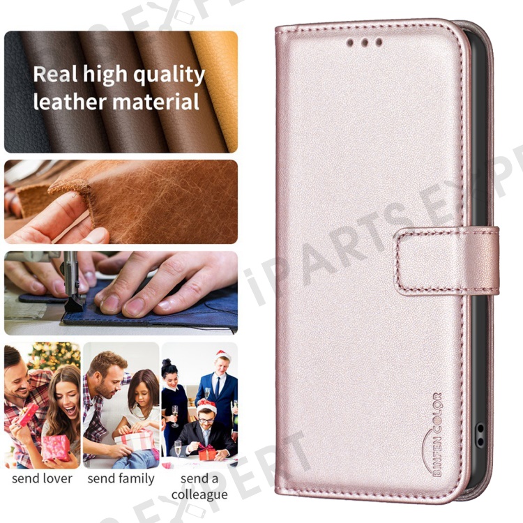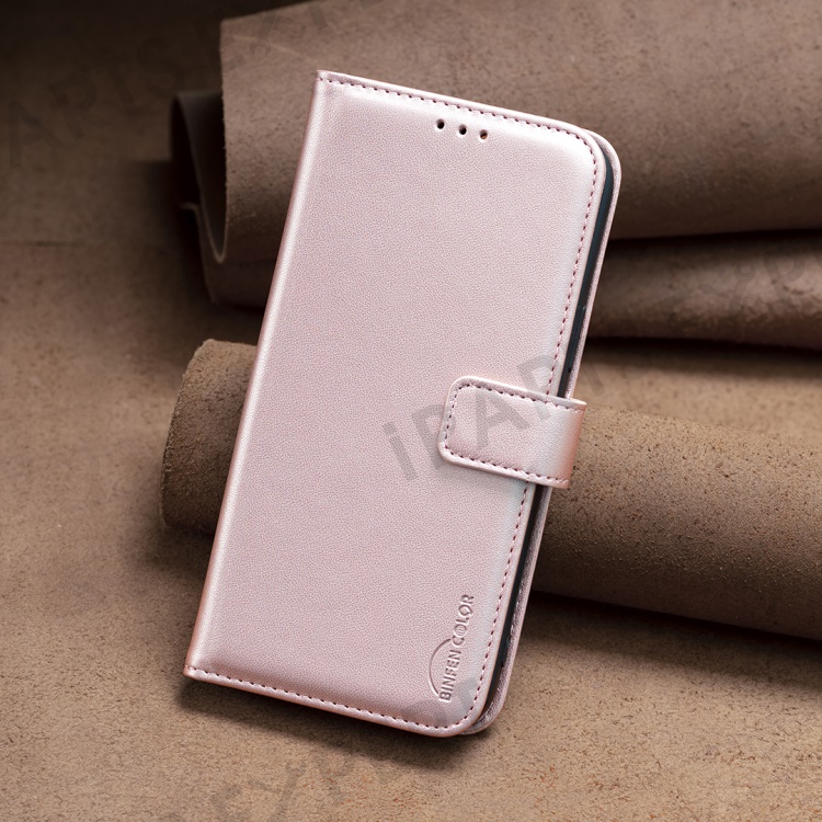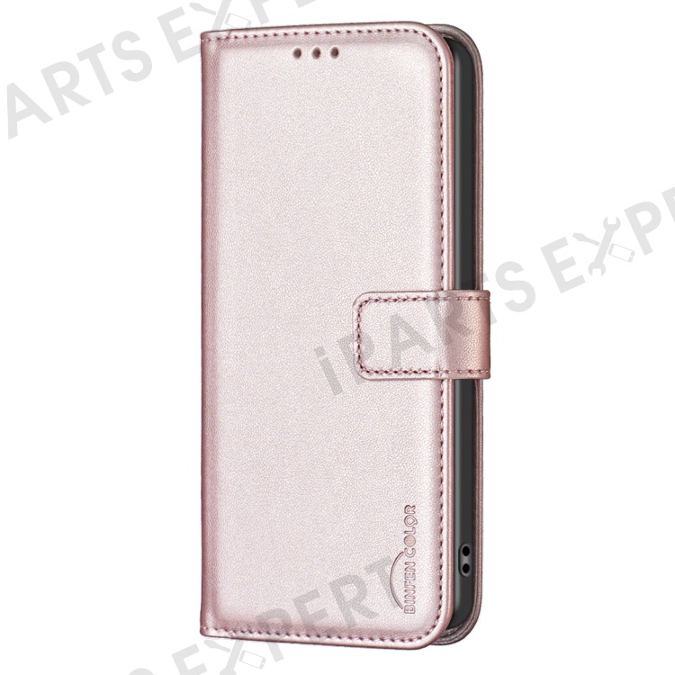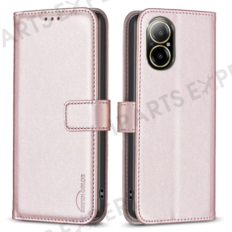 BINFEN COLOR BF17 For Realme C67 4G Case Wallet Leather Folio Phone Cover with Magnetic Closure - Rose Gold