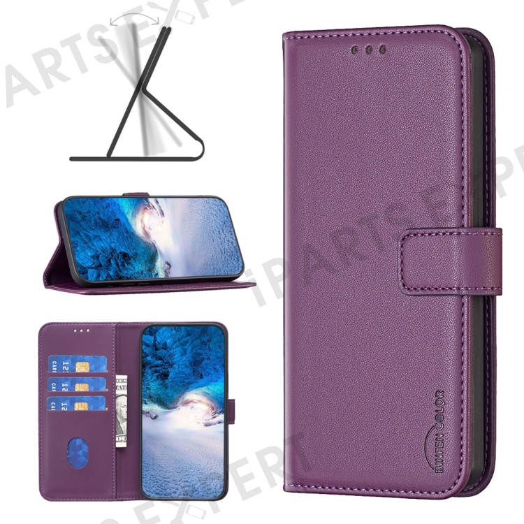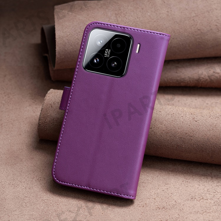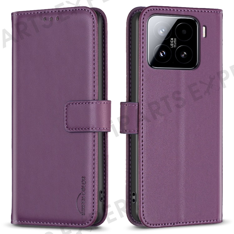 BINFEN COLOR BF17 For Xiaomi 15 Pro Case Wallet Folio Flip Leather Cover - Dark Purple