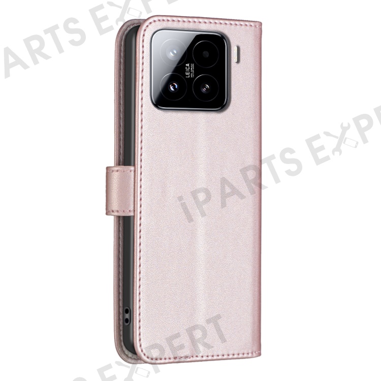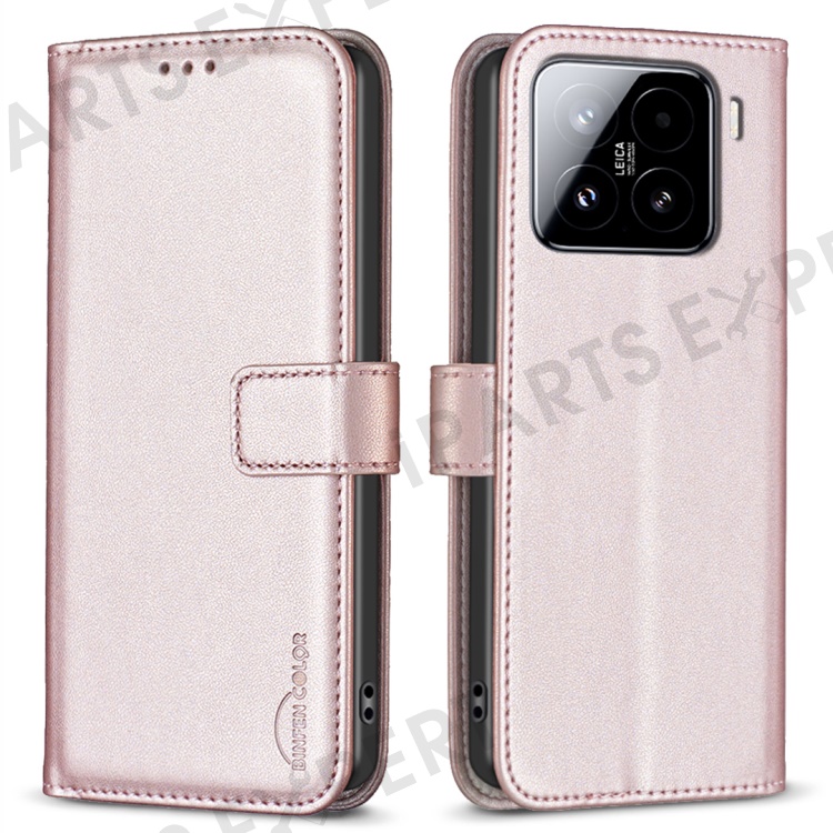 BINFEN COLOR BF17 For Xiaomi 15 Pro Case Wallet Folio Flip Leather Cover - Rose Gold