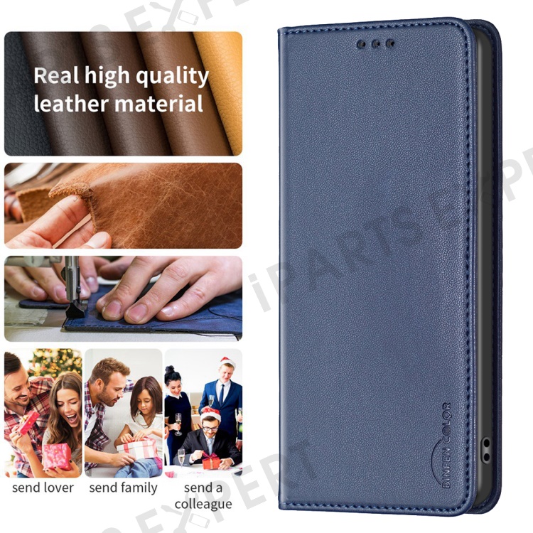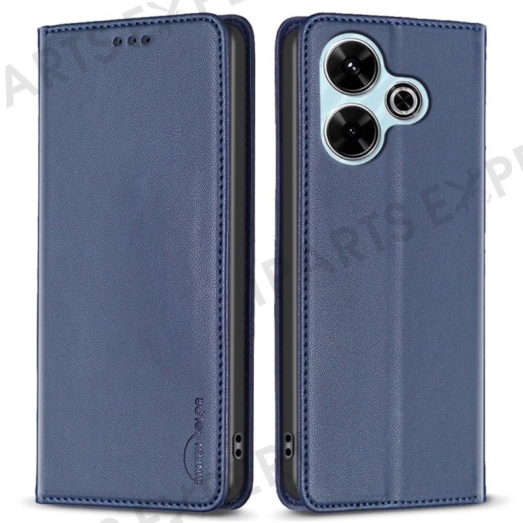 BINFEN COLOR BF18 For Xiaomi Redmi 13 5G / 13 4G / Poco M6 4G Case Leather Phone Cover Magnetic Close - Blue