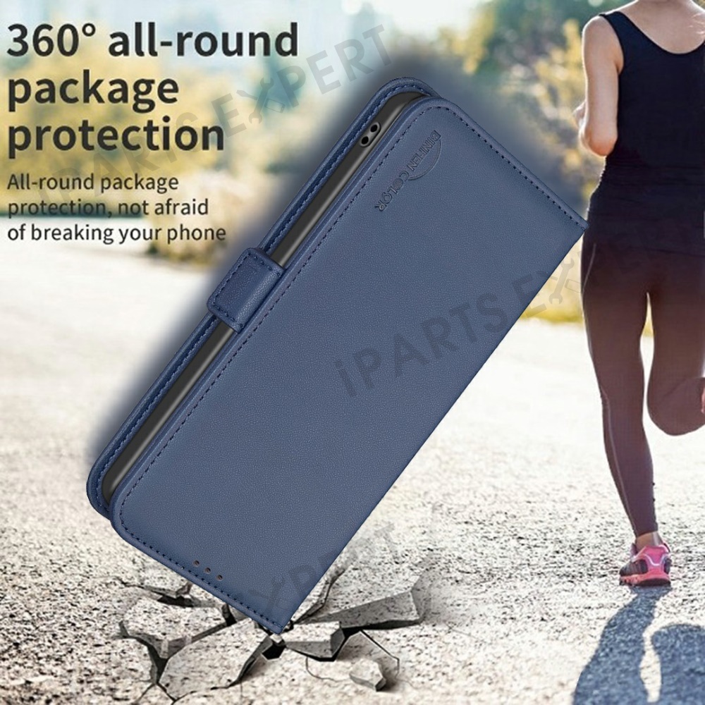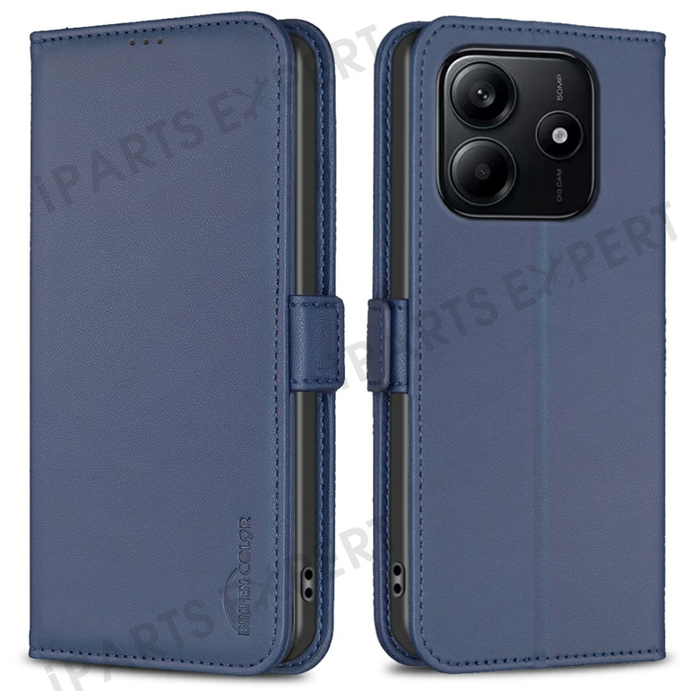 BINFEN COLOR BF31 For Xiaomi Redmi Note 14 4G (163.25mm) Case PU Leather Flip Folio Phone Wallet Cover - Blue