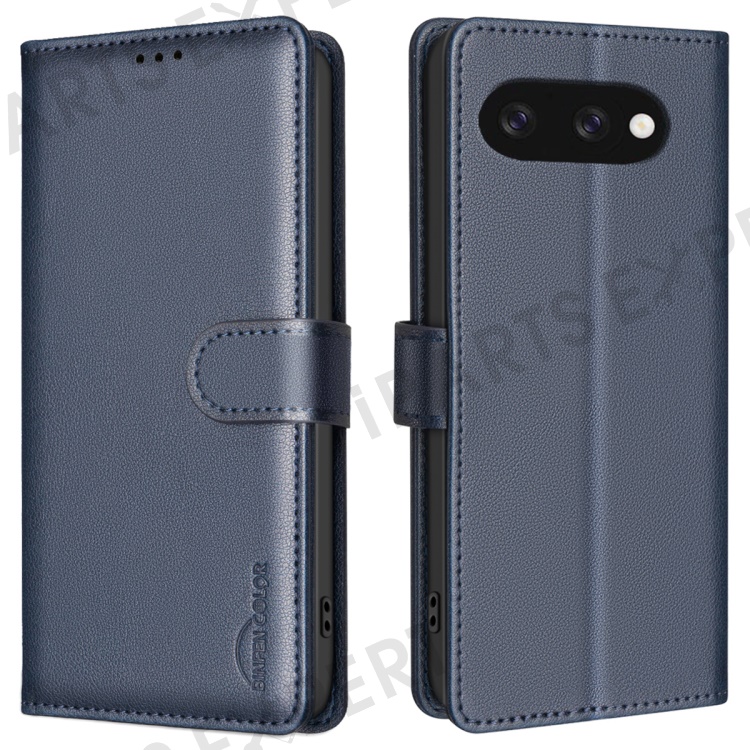 BINFEN COLOR BF32 For Google Pixel 9a Leather Case Wallet RFID Blocking Phone Cover - Blue