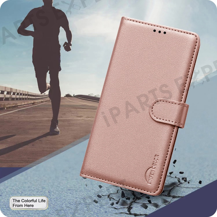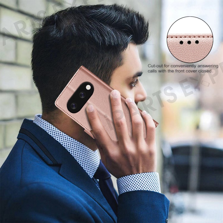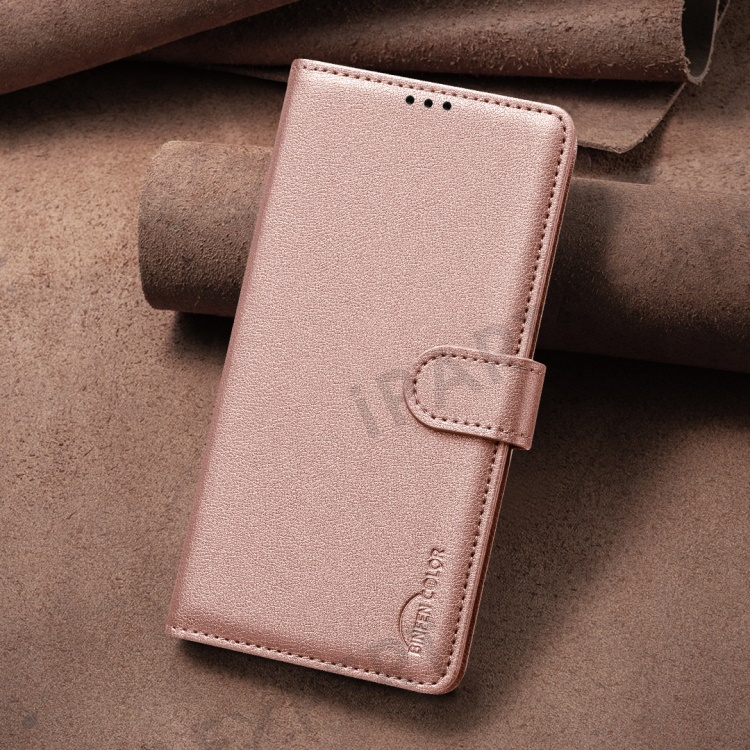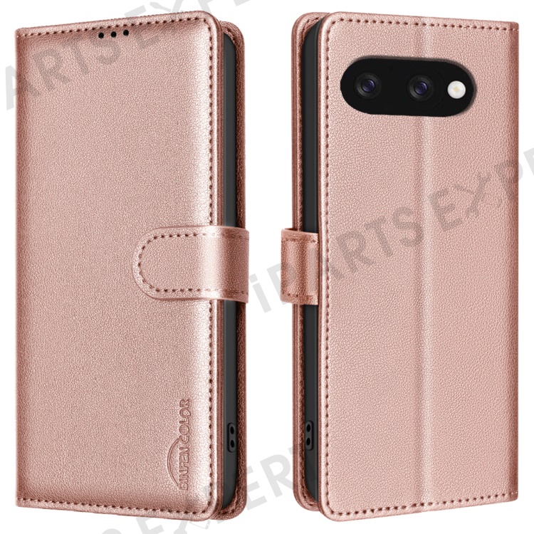 BINFEN COLOR BF32 For Google Pixel 9a Leather Case Wallet RFID Blocking Phone Cover - Rose Gold