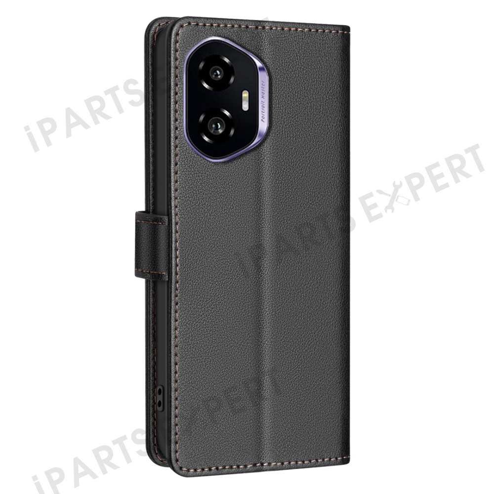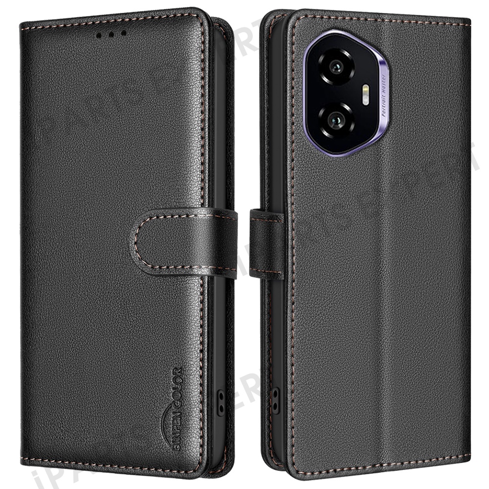 BINFEN COLOR BF32 For Honor 300 Leather Case Wallet RFID Blocking Phone Cover - Black