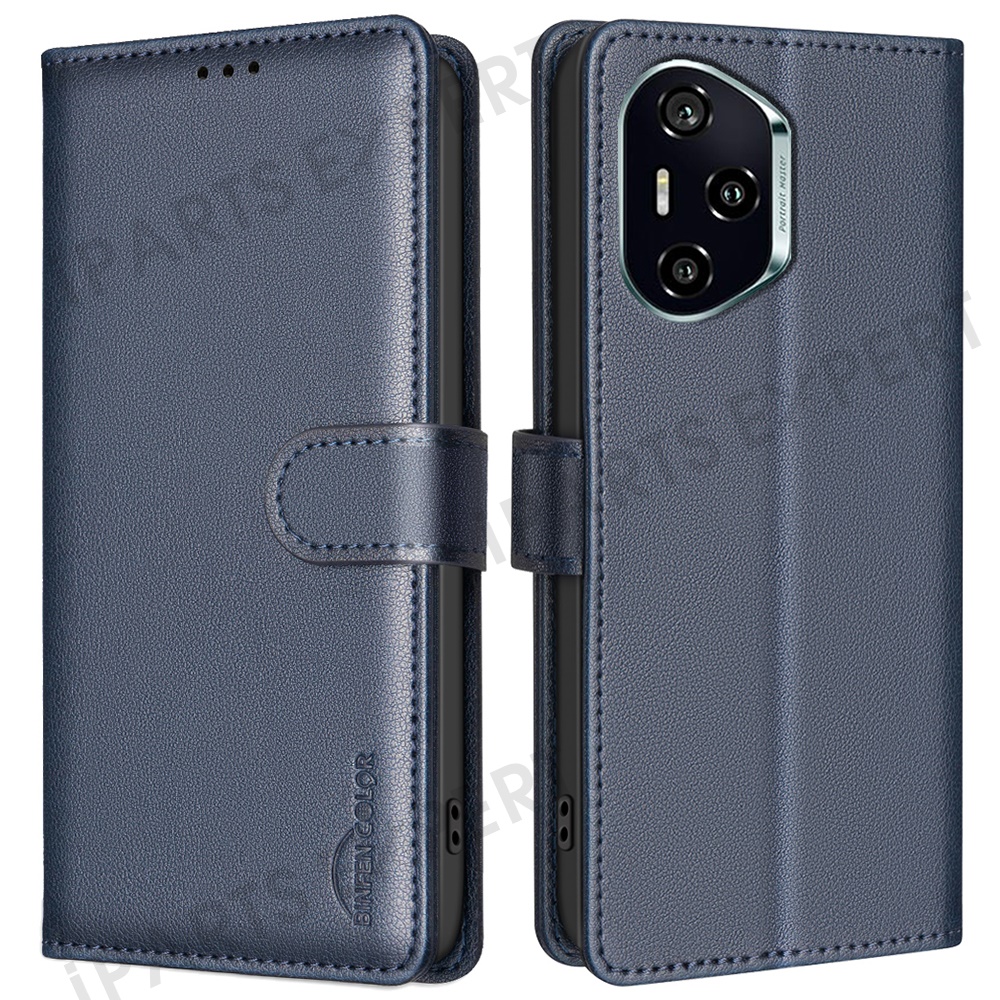 BINFEN COLOR BF32 For Honor 300 Pro / 300 Ultra Leather Case Wallet RFID Blocking Phone Cover - Blue