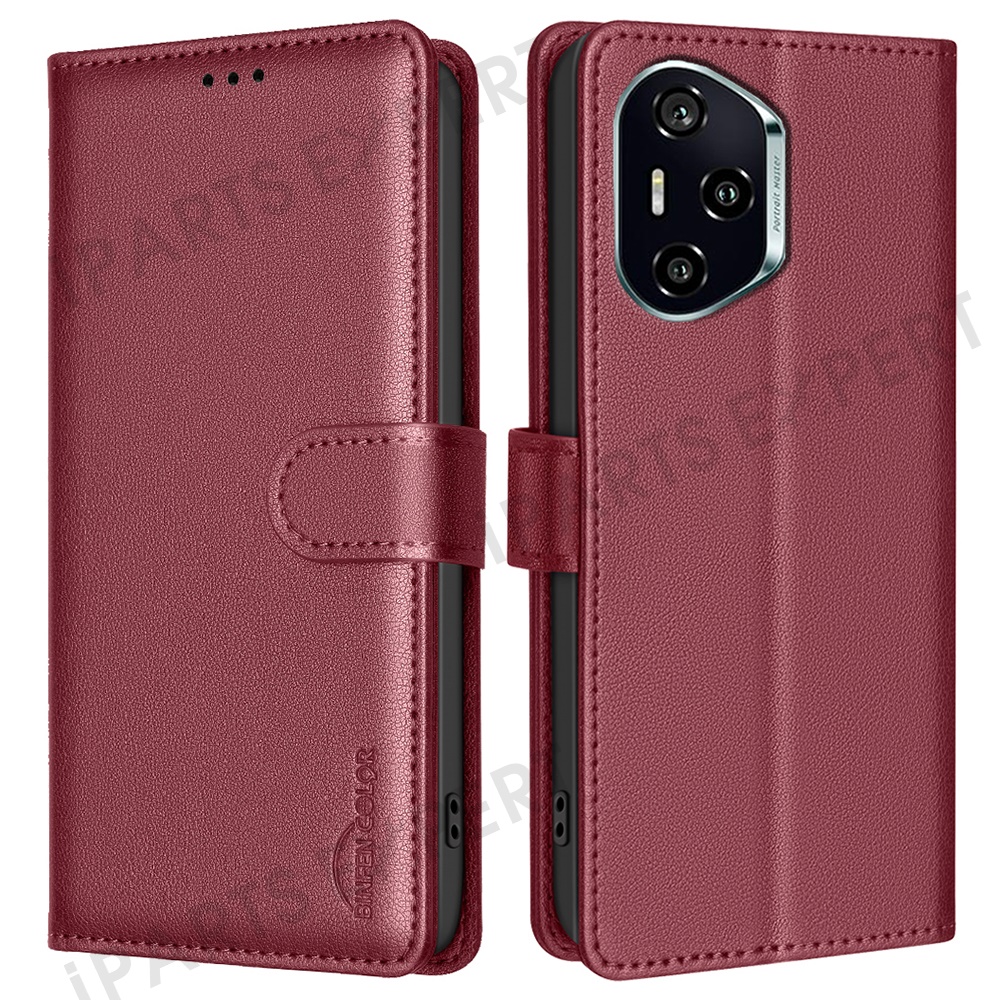 BINFEN COLOR BF32 For Honor 300 Pro / 300 Ultra Leather Case Wallet RFID Blocking Phone Cover - Red