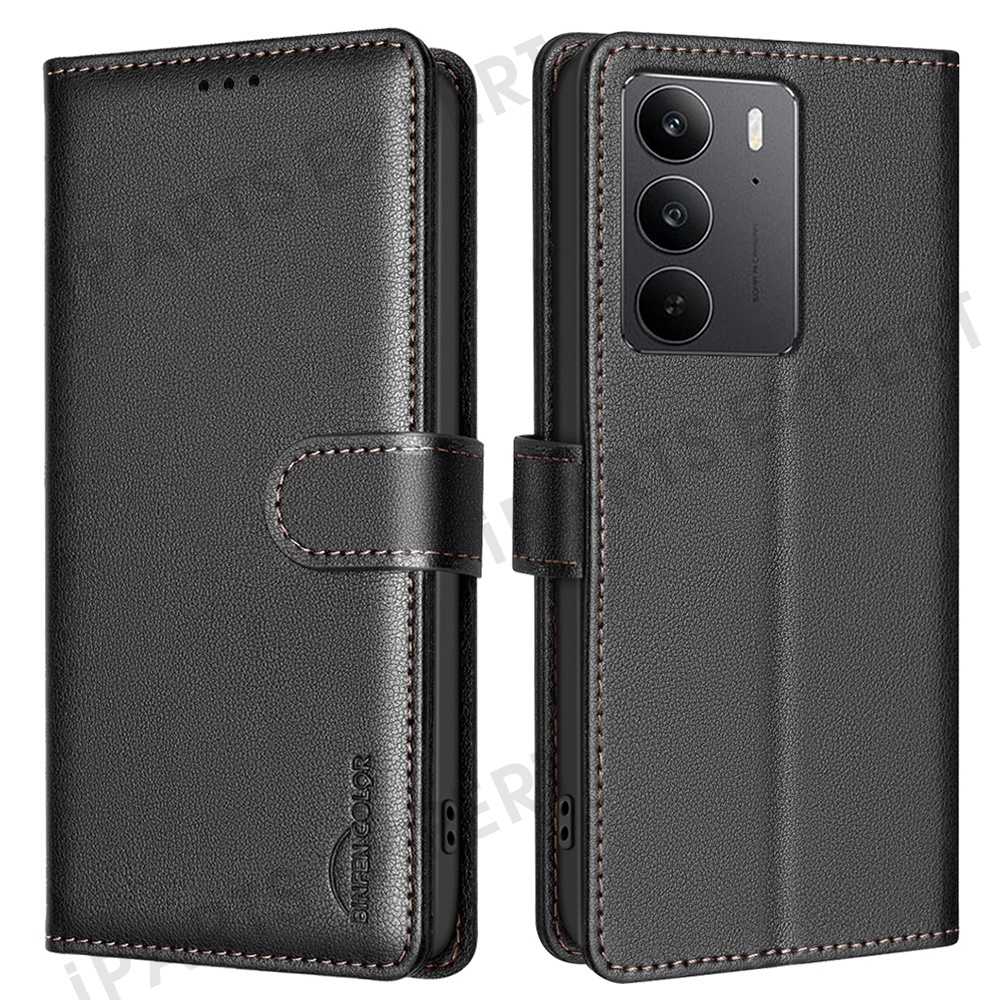 BINFEN COLOR BF32 For Realme C75 Leather Case Wallet RFID Blocking Phone Cover - Black