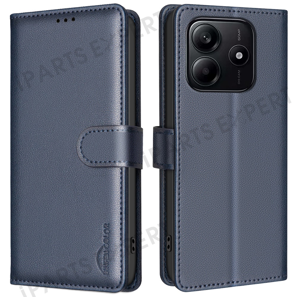 BINFEN COLOR BF32 For Xiaomi Redmi Note 14 4G (163.25mm) Leather Case Wallet RFID Blocking Phone Cover - Blue