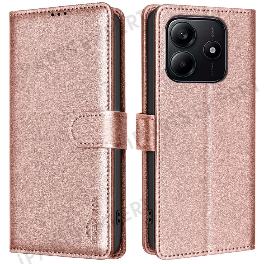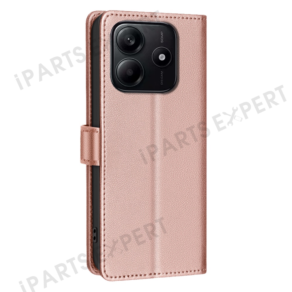 BINFEN COLOR BF32 For Xiaomi Redmi Note 14 4G (163.25mm) Leather Case Wallet RFID Blocking Phone Cover - Rose Gold