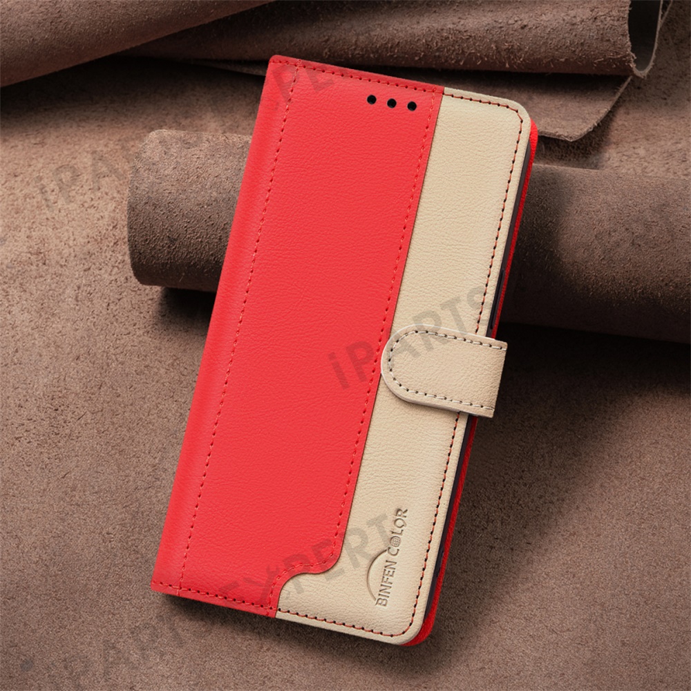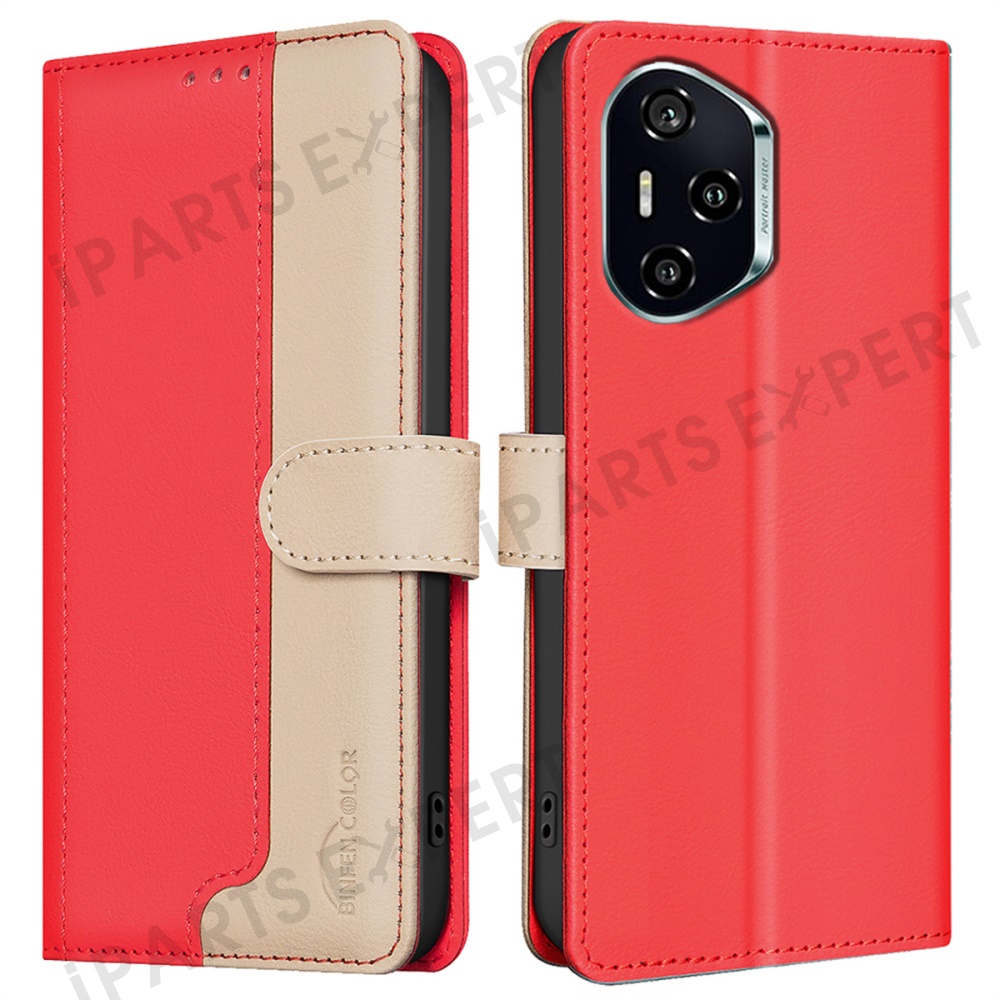 BINFEN COLOR BF33 for Honor 300 Pro / 300 Ultra Leather Case Splicing Color RFID Blocking - Red