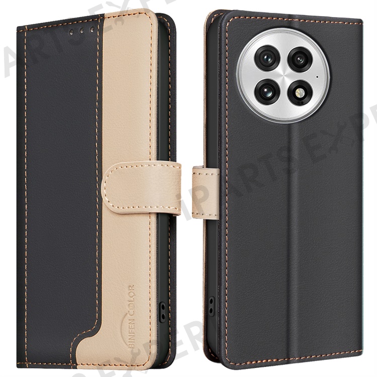 BINFEN COLOR BF33 for OnePlus 13 Leather Case Splicing Color RFID Blocking - Black