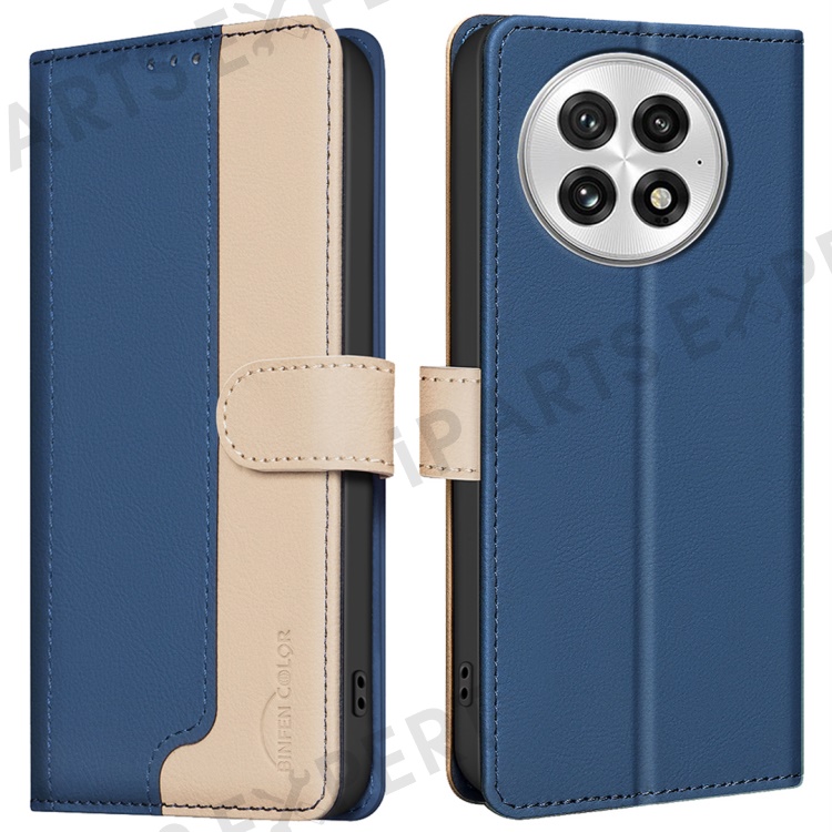 BINFEN COLOR BF33 for OnePlus 13 Leather Case Splicing Color RFID Blocking - Blue