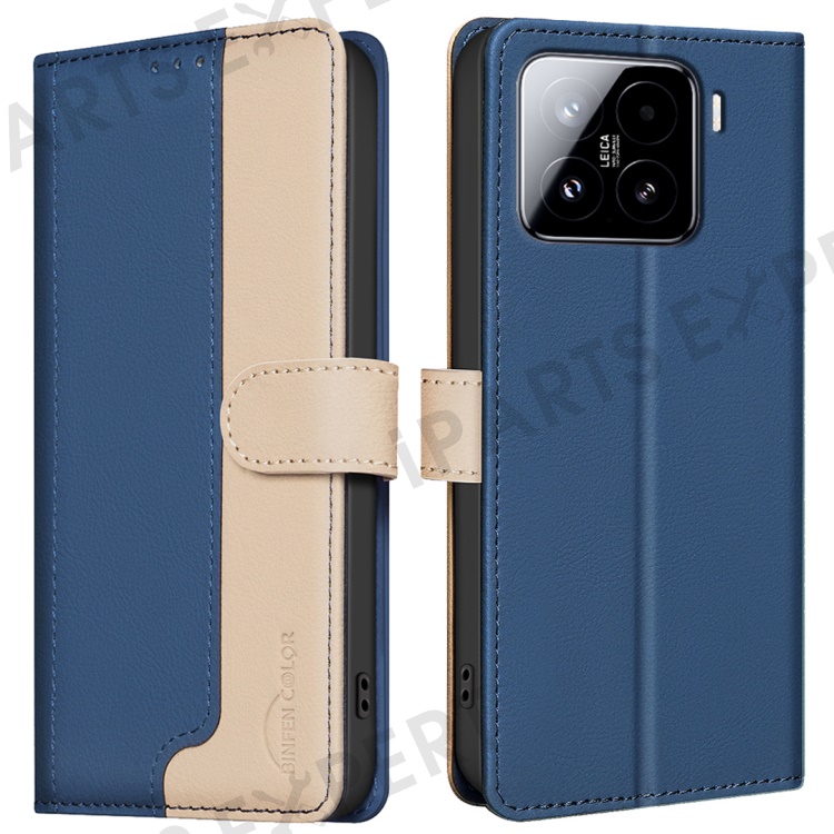 BINFEN COLOR BF33 for Xiaomi 15 Pro Leather Case Splicing Color RFID Blocking - Blue