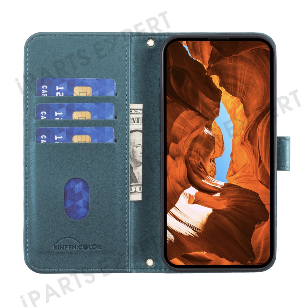 BINFEN COLOR for Xiaomi Redmi Note 14 4G (163.25mm) Leather Case Wallet Square Grid Phone Cover - Green