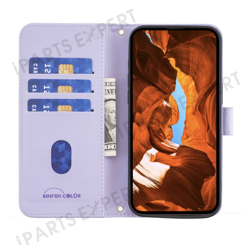BINFEN COLOR for Xiaomi Redmi Note 14 4G (163.25mm) Leather Case Wallet Square Grid Phone Cover - Light Purple