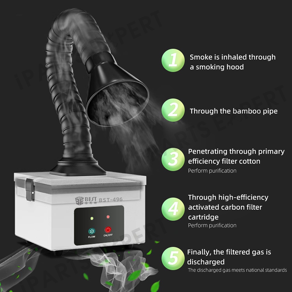 BEST-496 Smoke Extractor Fume Purifier for Soldering Stations Workbenches Multi Scenario Air Filtration - EU Plug