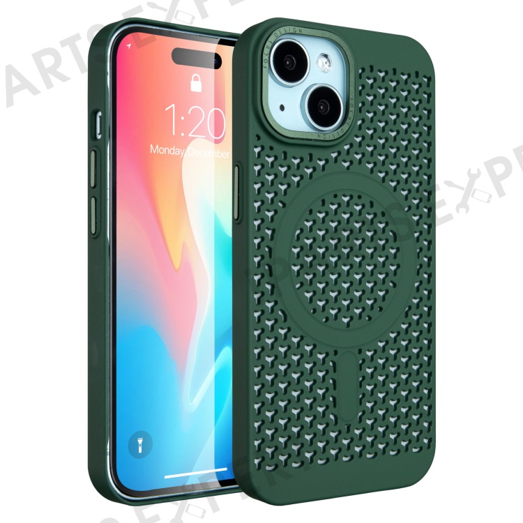 Bulk Purchasing For iPhone 15 Plus Magnetic Case Heat Dissipation PC+TPU Phone Cover - Blackish Green