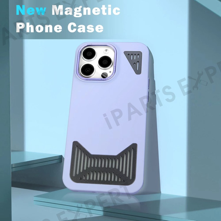 Bulk Purchasing For iPhone 15 Pro Max Magnetic Case Hollow Out Heat Dissipation PC+TPU Phone Cover - Purple