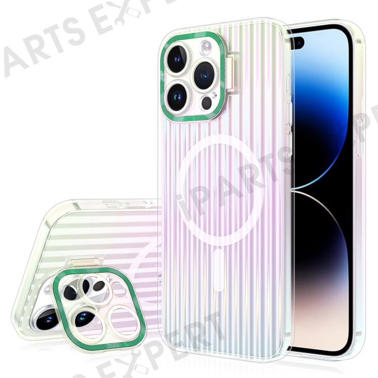 Bulk Purchasing For iPhone 15 Pro Max Magnetic Case PC+TPU Gradient Color Phone Cover with Lens Kickstand - Green