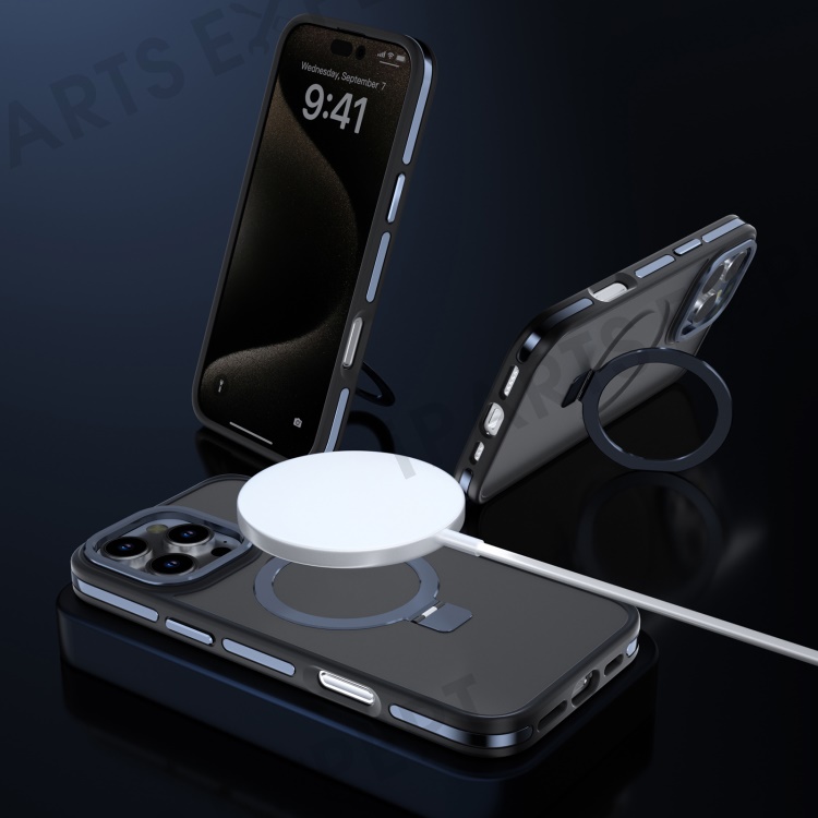 C1 Series For iPhone 16 Pro Case Magnetic Invisible Holder TPU+PC Skin Touch Phone Cover - Sapphire