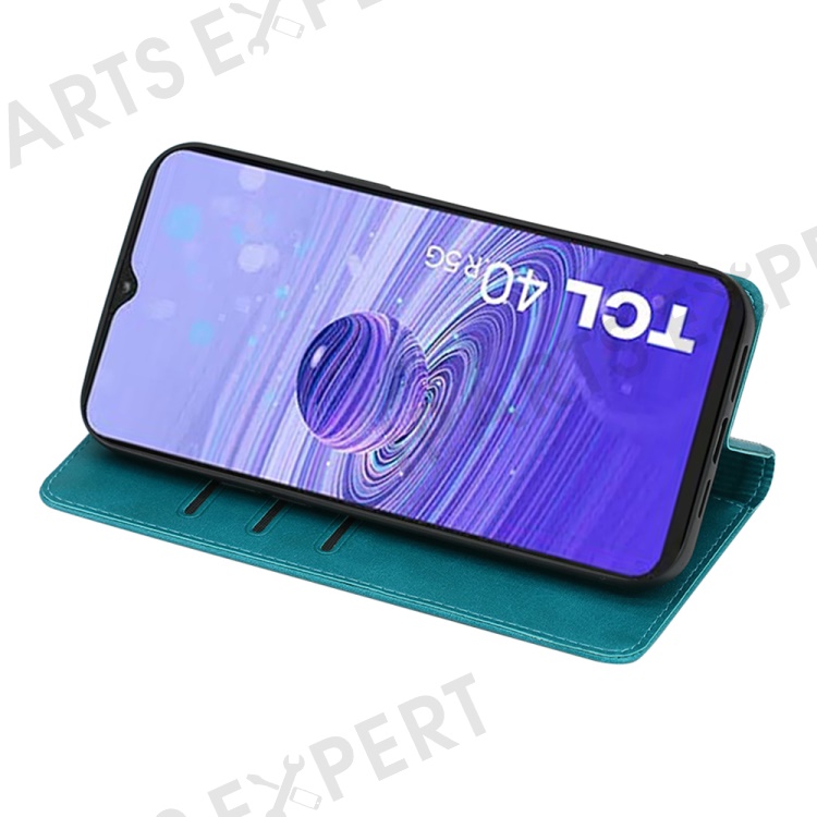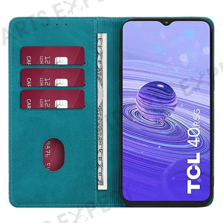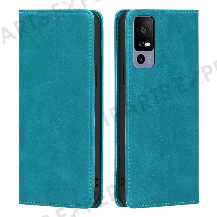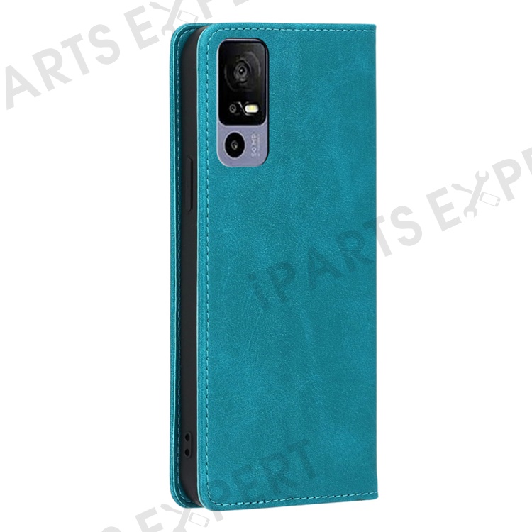 Calf Texture Magnetic Auto-absorbed Phone Case for TCL 40R 5G, PU Leather Wallet Stand Shockproof Cover - Baby Blue