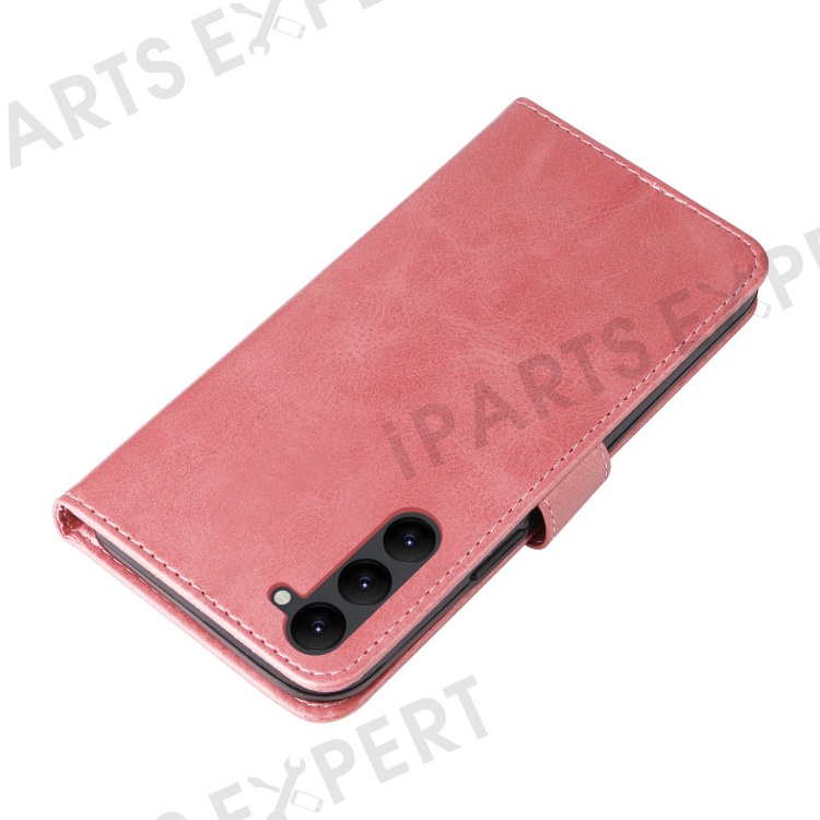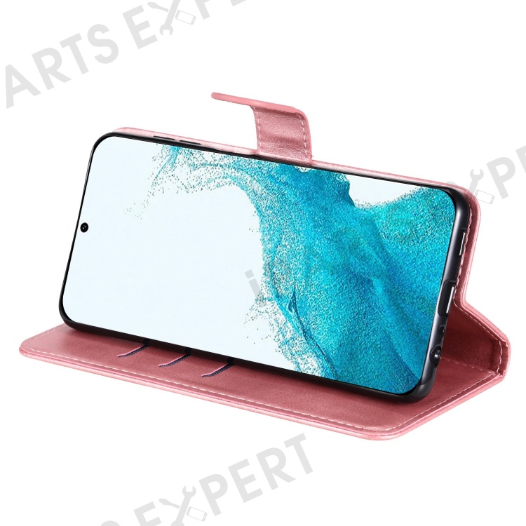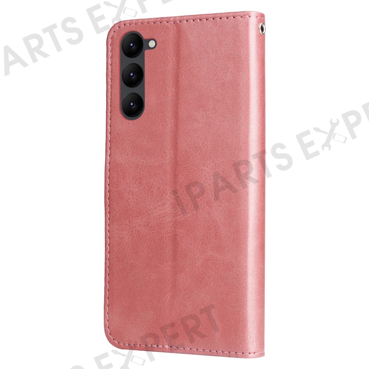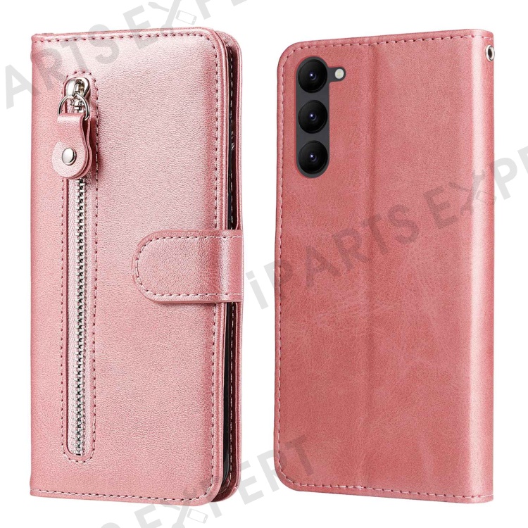 Calf Texture Phone Case For Samsung Galaxy S23+, PU Leather Zipper Pocket Flip Wallet Cover with Foldable Stand - Rose Gold