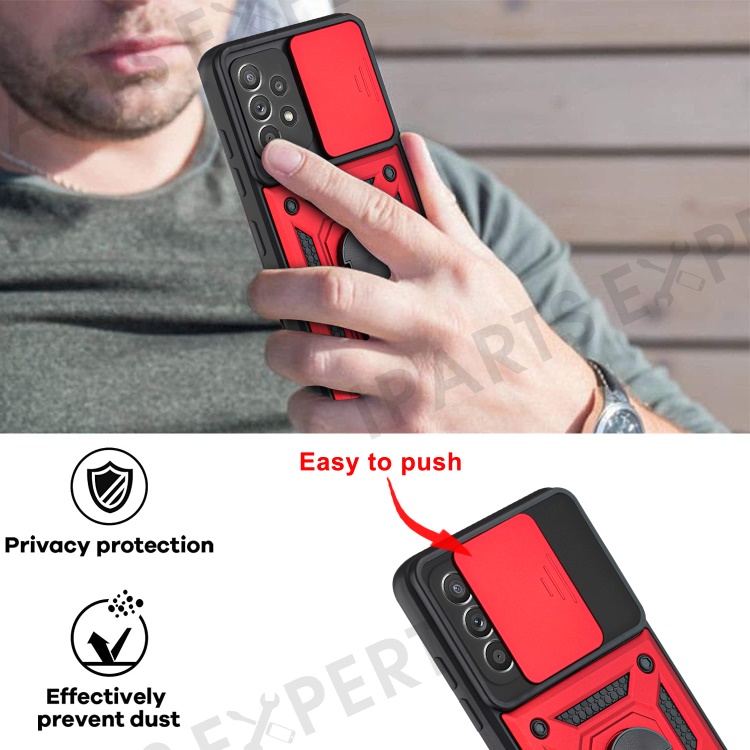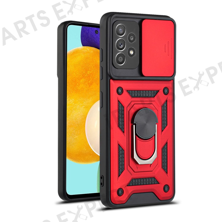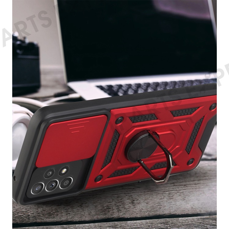 Camera Slide Drop-resistant Phone Case Cover with Kickstand for Samsung Galaxy A52 4G/5G / A52s 5G - Red