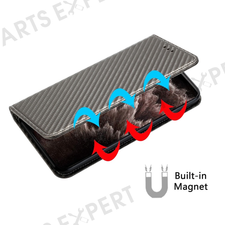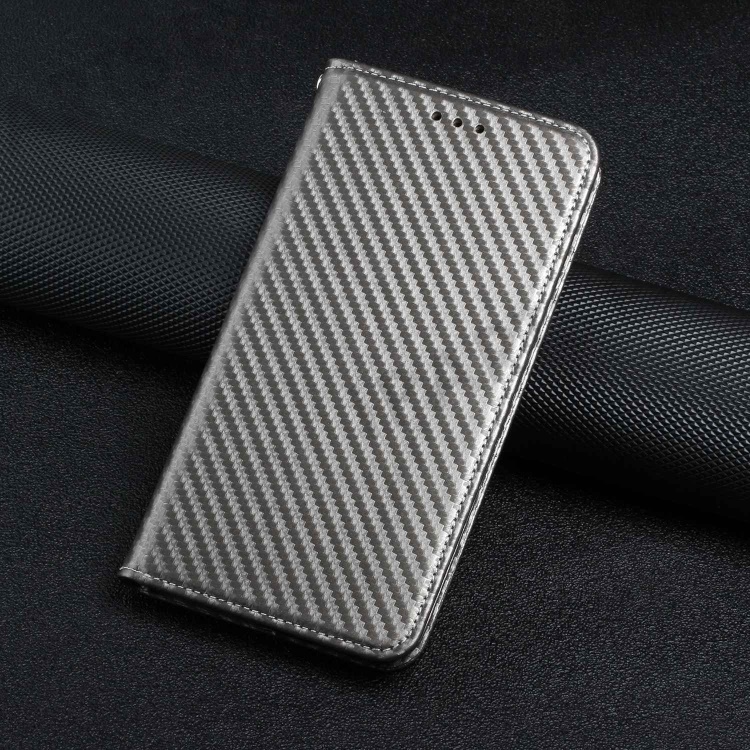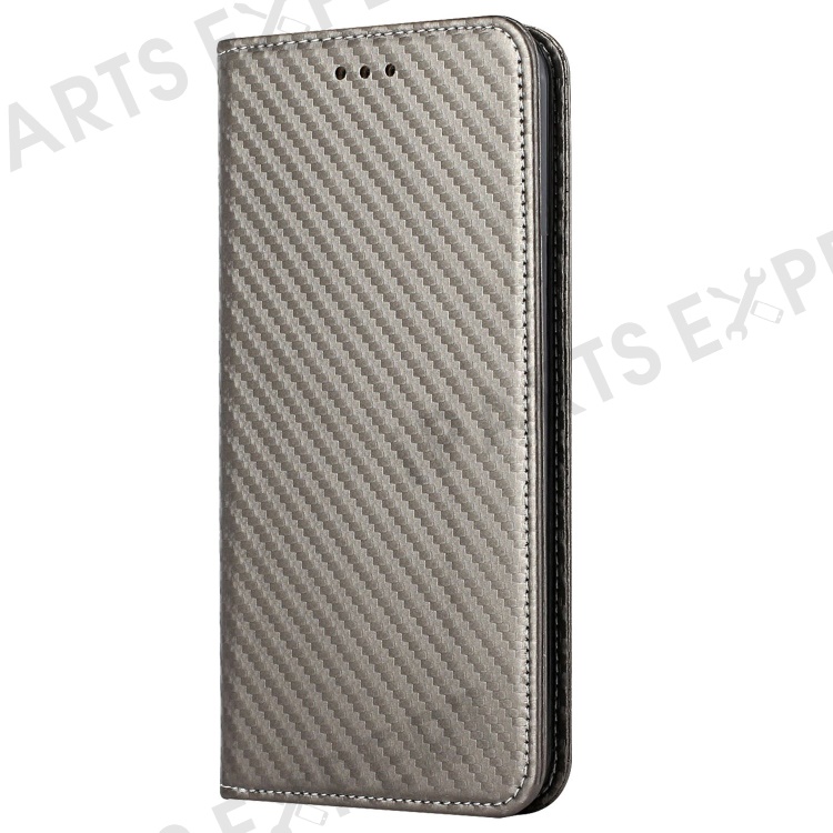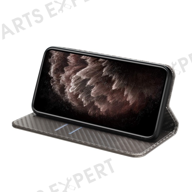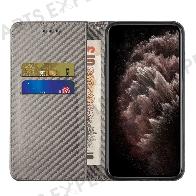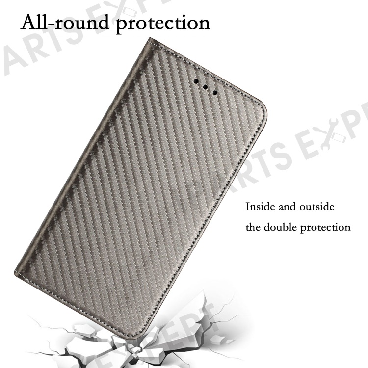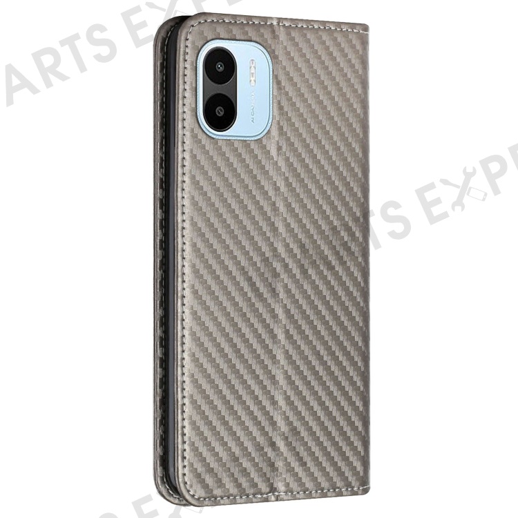 Carbon Fiber Texture PU Leather Phone Case For Xiaomi Redmi A1 4G / A2 4G , Wallet Stand Magnetic Auto Closing Shockproof Phone Cover with Wrist Strap - Grey