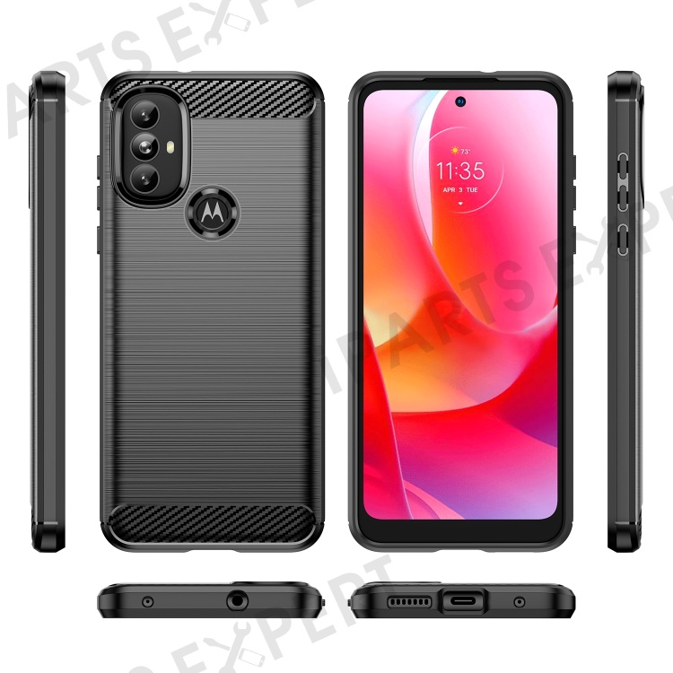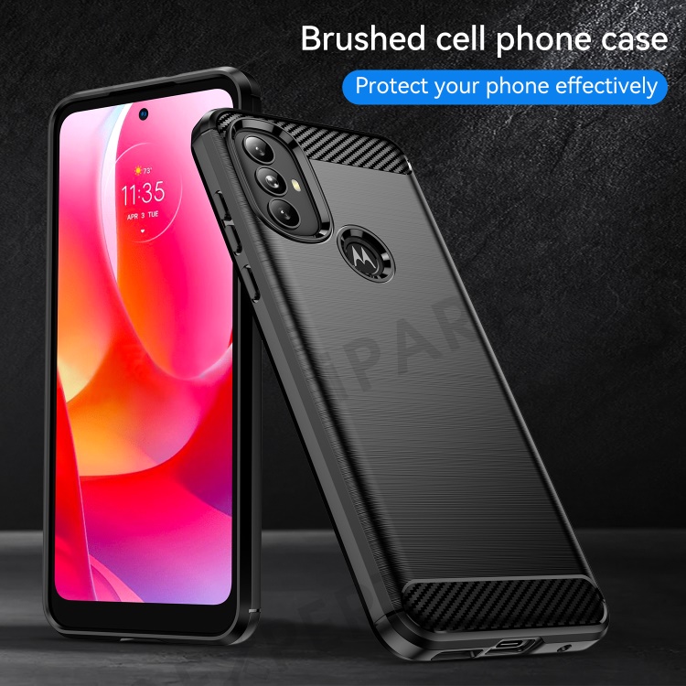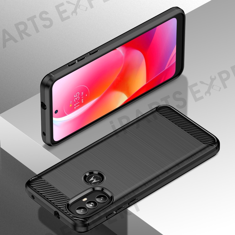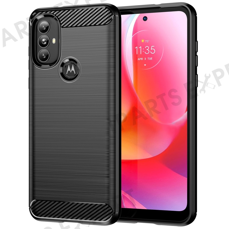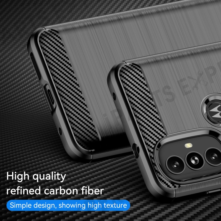 1.8mm Carbon Fiber Texture TPU Case Brushed Surface Super Flexible Buffering Phone Cover for Motorola Moto G Power (2022) / G Play (2023) 4G - Black