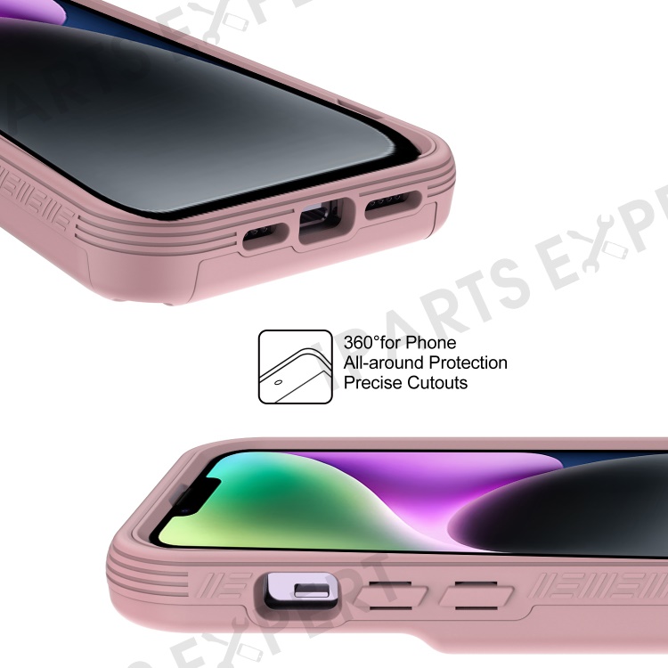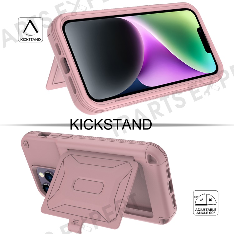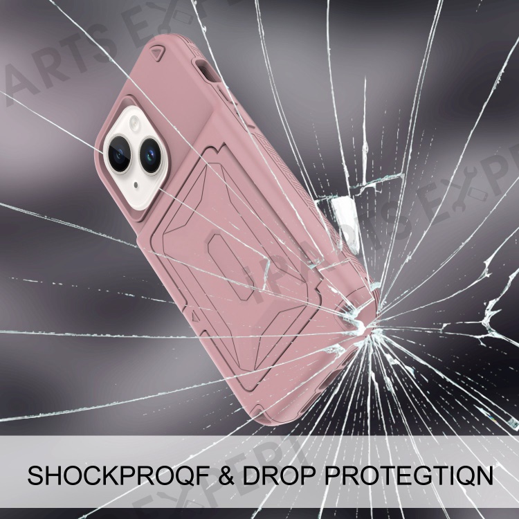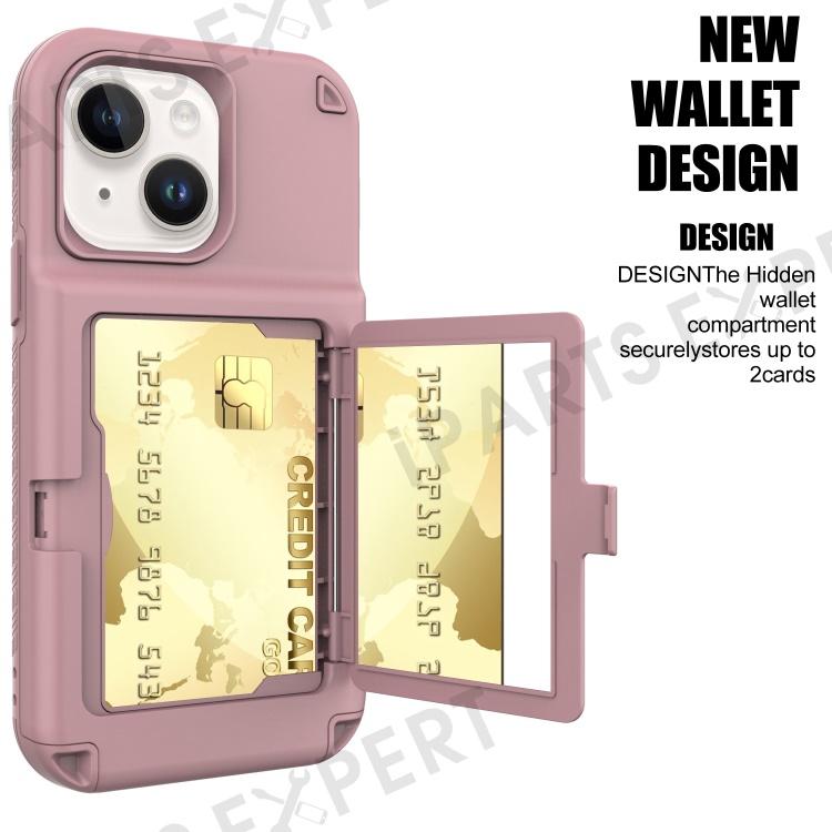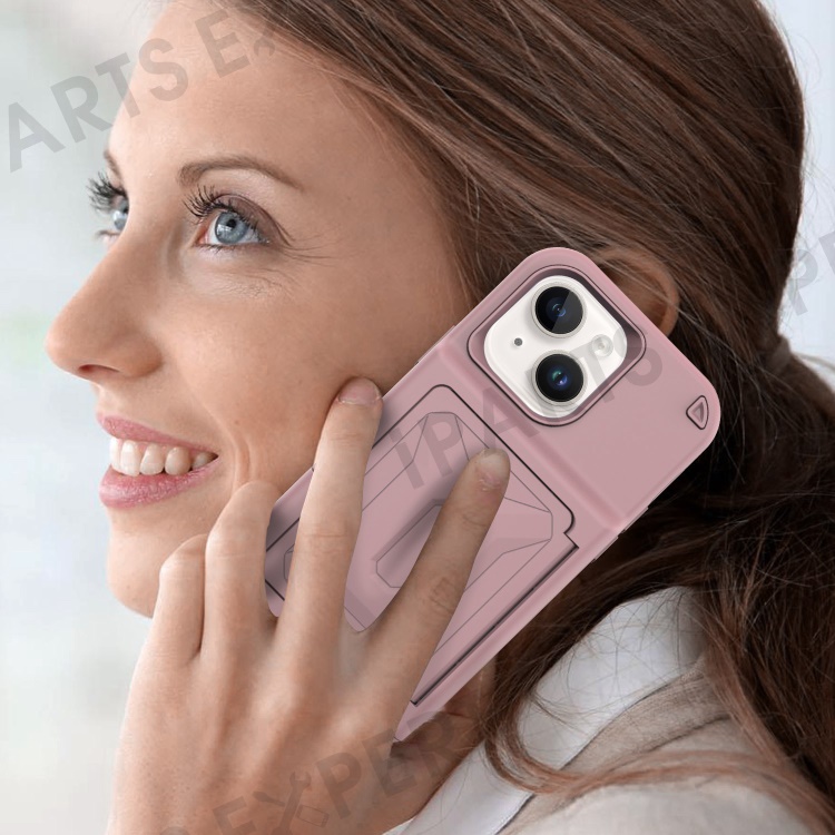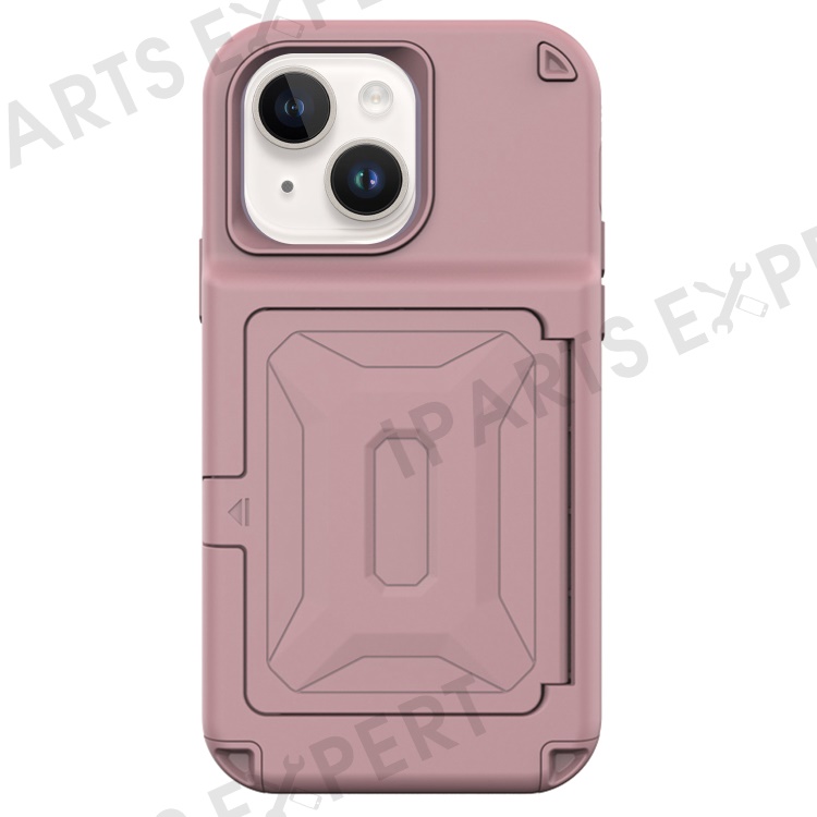 Cardcase Series Kickstand Phone Case for iPhone 14, Mirror Function Card Holder PC + TPU Thickened Hybrid Cover - Pink