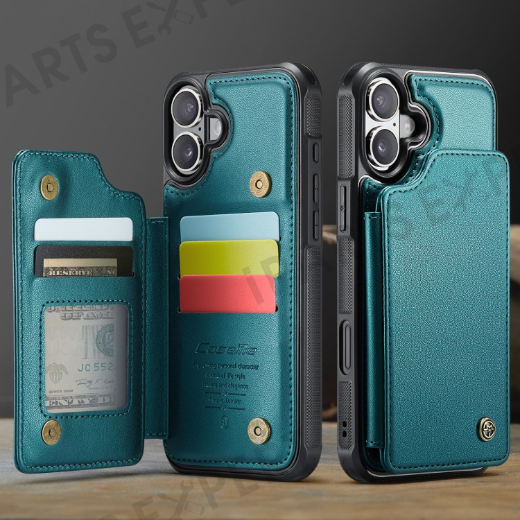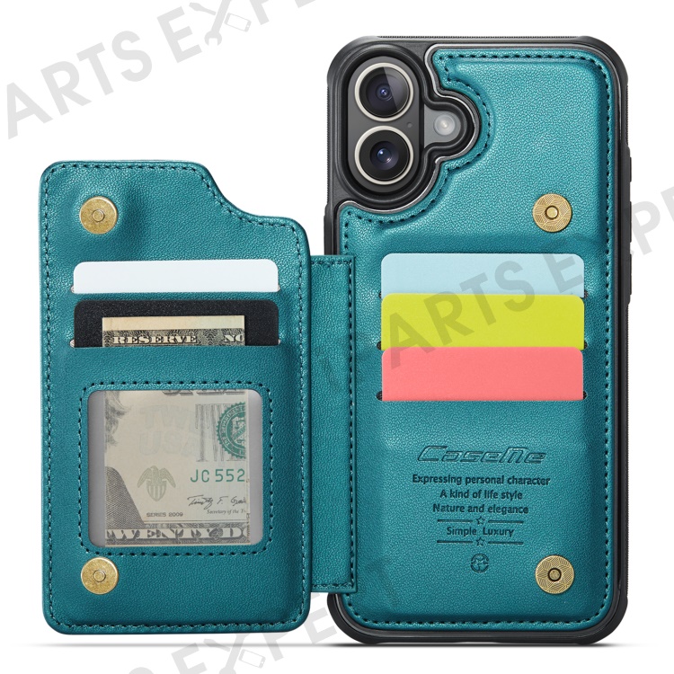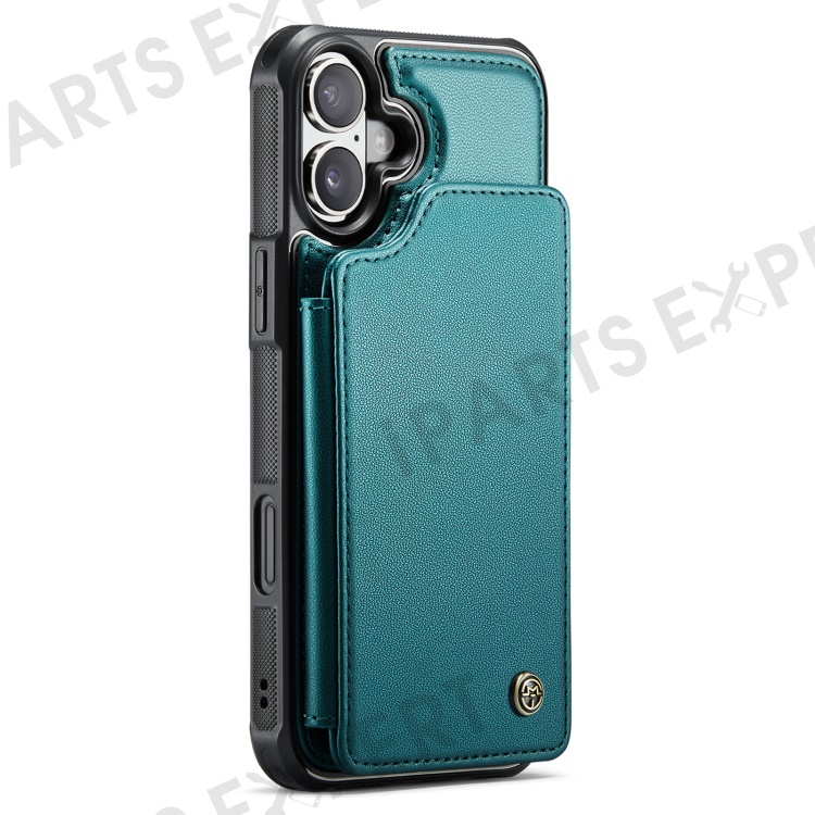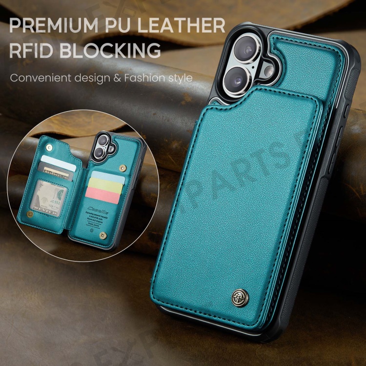 For iPhone 16 Plus Phone Case CASEME C22 Leather Back Cover with RFID Blocking Card Slots - Green