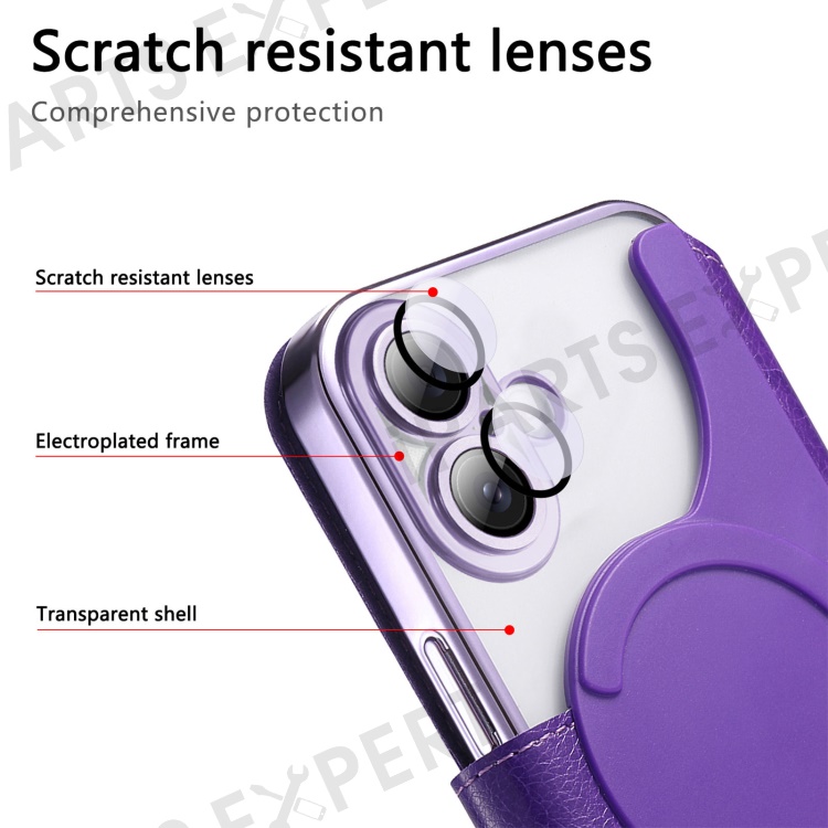 CASENEO For iPhone 16 Plus Case with Lens Film TPU Inner Shell Detachable Leather Phone Cover - Light Purple