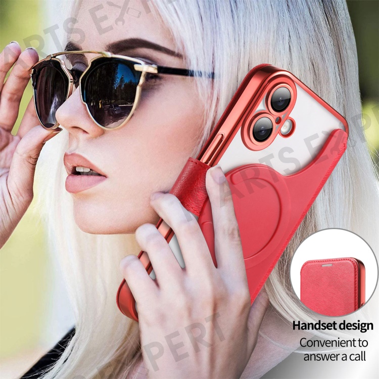 CASENEO For iPhone 16 Plus Case with Lens Film TPU Inner Shell Detachable Leather Phone Cover - Red