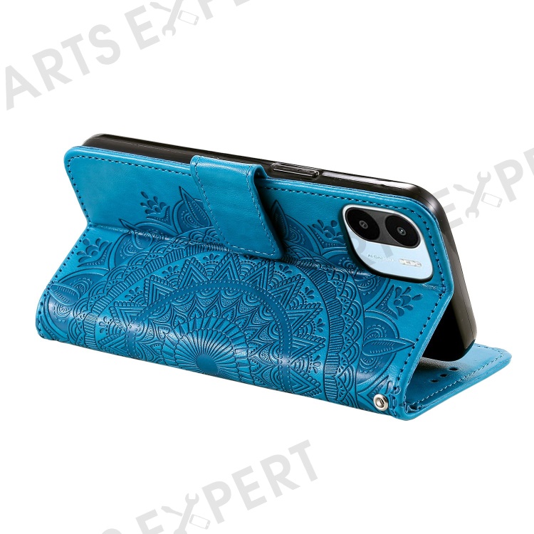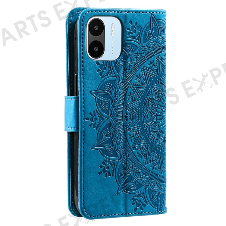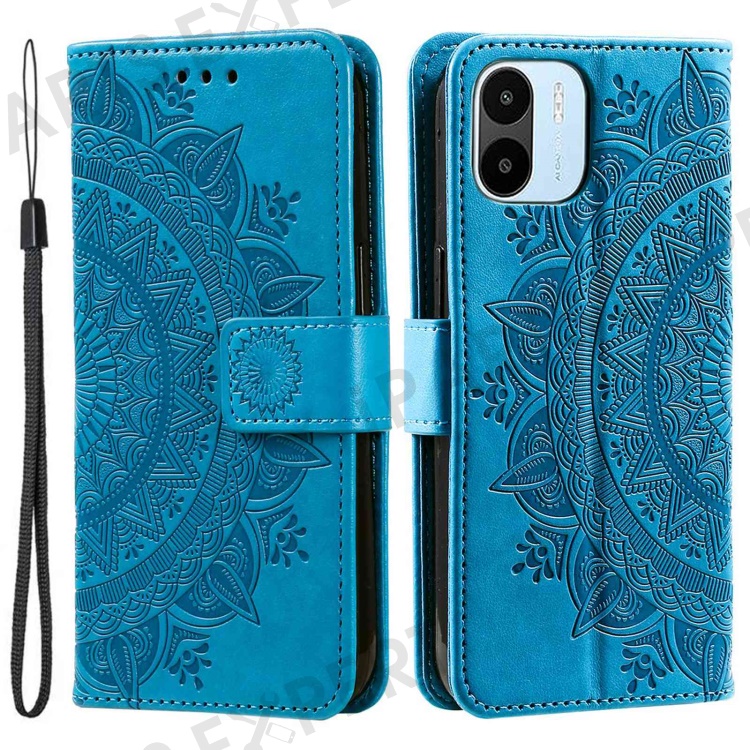 Cell Phone Cover For Xiaomi Redmi A1 4G, Mandala Flower Pattern Imprinted PU Leather Flip Wallet Case Stand Phone Shell - Blue