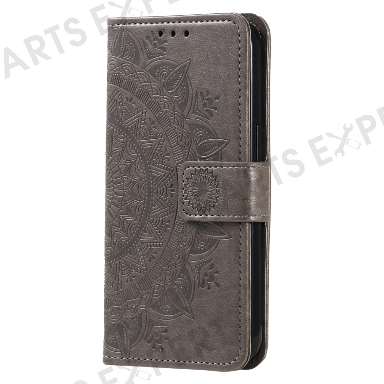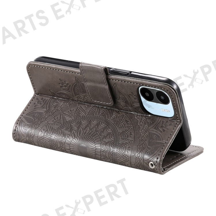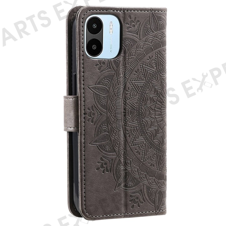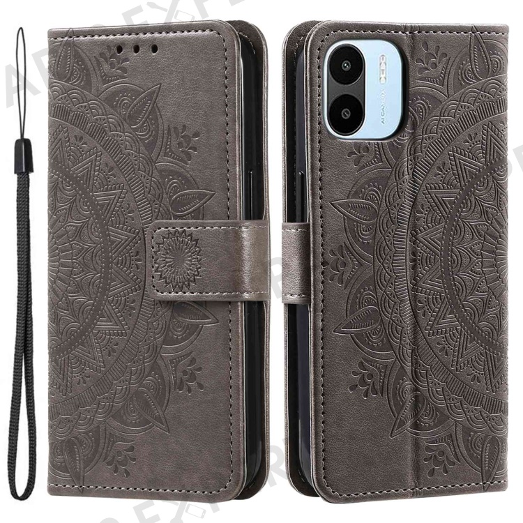 Cell Phone Cover For Xiaomi Redmi A1 4G, Mandala Flower Pattern Imprinted PU Leather Flip Wallet Case Stand Phone Shell - Grey