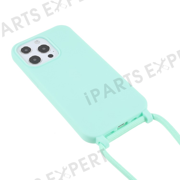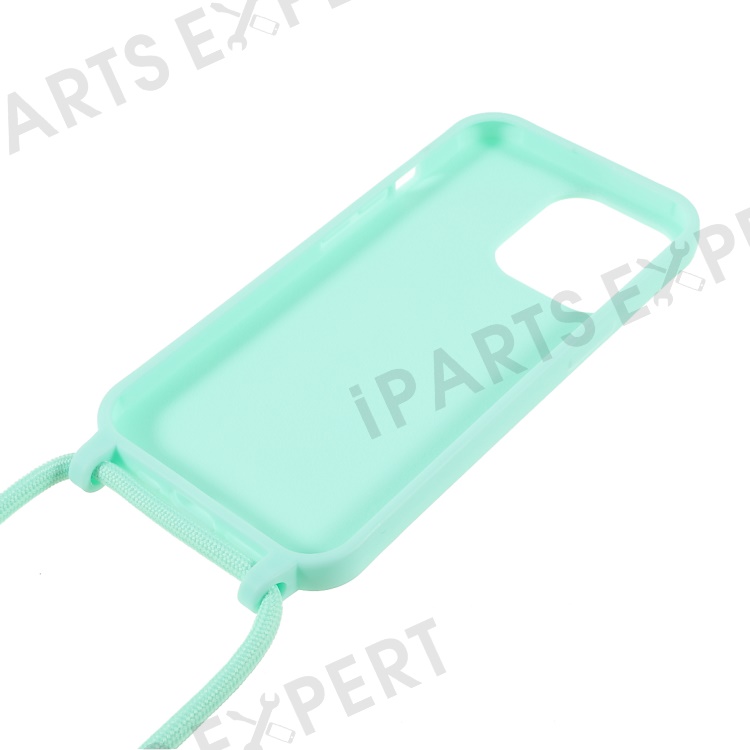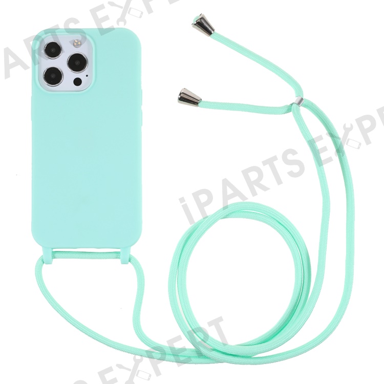 Cell Phone TPU Case Protector with Adjustable Lanyard for iPhone 13 Pro Max 6.7 inch - Mint Green